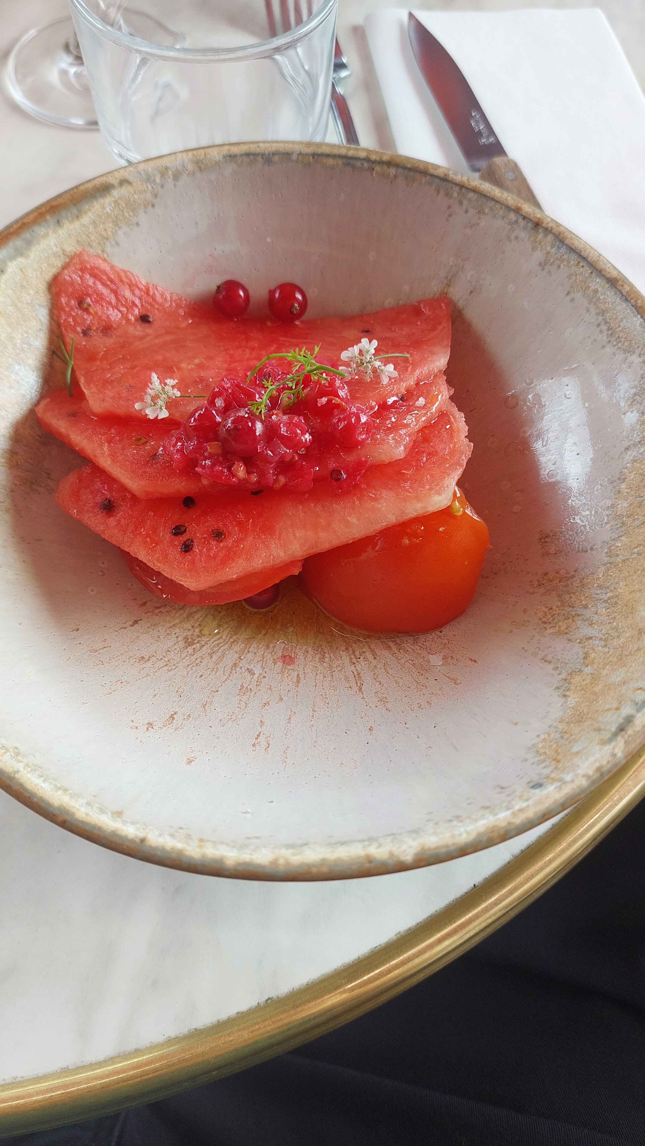J’ai demandé s’il existait un menu végétarien avant de venir, on m’a dit oui. Le plat principal était constitué d’un mélange d’accompagnements des plats carnés. Quand on m’a demandé mon avis, j’ai dit que c’était pas idéal, (sans rien demander) et le serveur a été assez désagréable (blague de mauvais goût sur les végétariens, malheureusement a ce prix c’est pas très marrant). Prix excessif pour la qualité de la prestation, pour presque une centaine d’euros vous trouverez mieux ailleurs