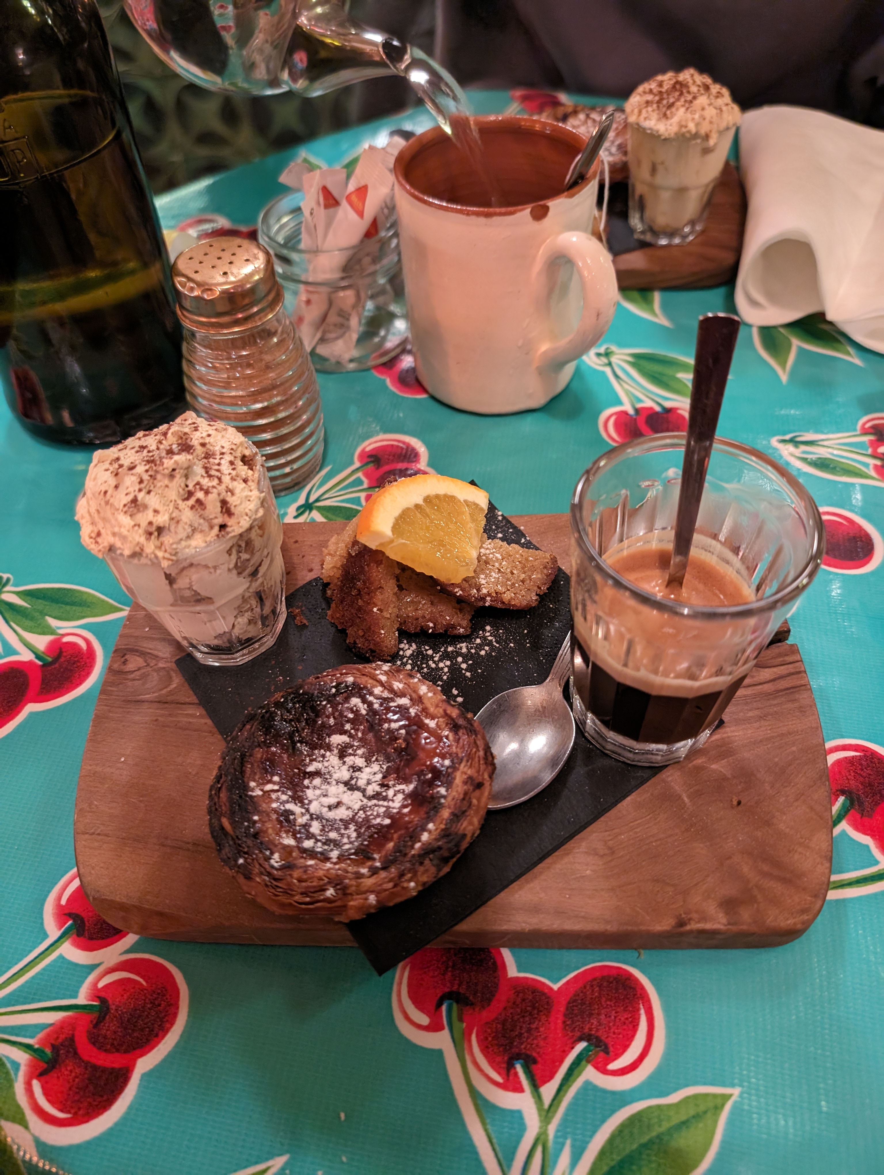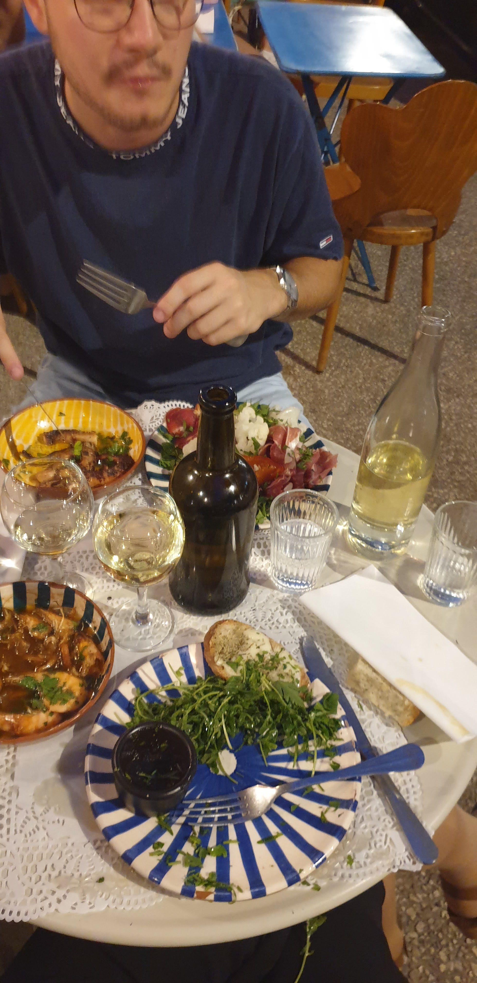 C'est vite vu: on a pris quasi toute la carte de tapas à se partager à 4. Très très bon sauf peut être le poulpe dont la texture était un peu farineuse mais sinon tout avait bon goût. Les cocktail était aussi très bon (même si la menthe manquait un peu de fraîcheur). Le tiramissu lisboète est à tomber par terre. Texture incroyable. Je recommande !!