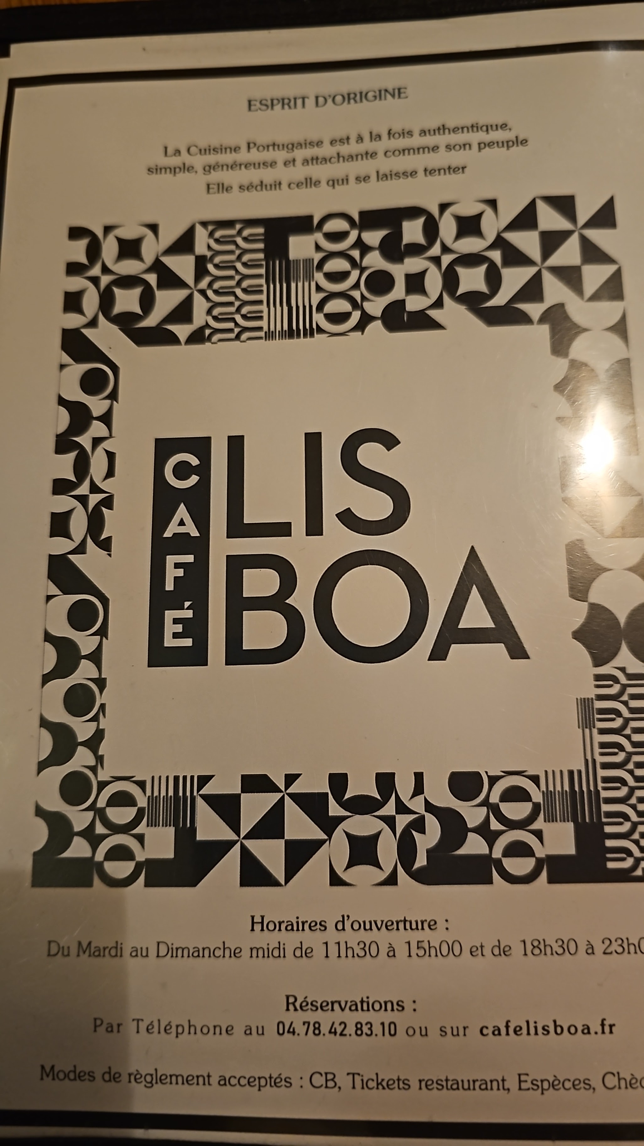 Ce café Lisboa en plein centre de Lyon est totalement réjouissant ! Mais ne comptez pas y manger si vous n'avez pas réservé. L'accueil est chaleureux, le décor sobre et la vaisselle portugaise. Tout est excellent que ce soit l'effiloché de morue, le poulpe sous toutes ses formes, le 1/2 chorizo flambé (à manger impérativement) les croquettes alheir. Le tiramisu est sympa mais craquez pour les pastel de nata. Un bon moment en perspective vous attend.