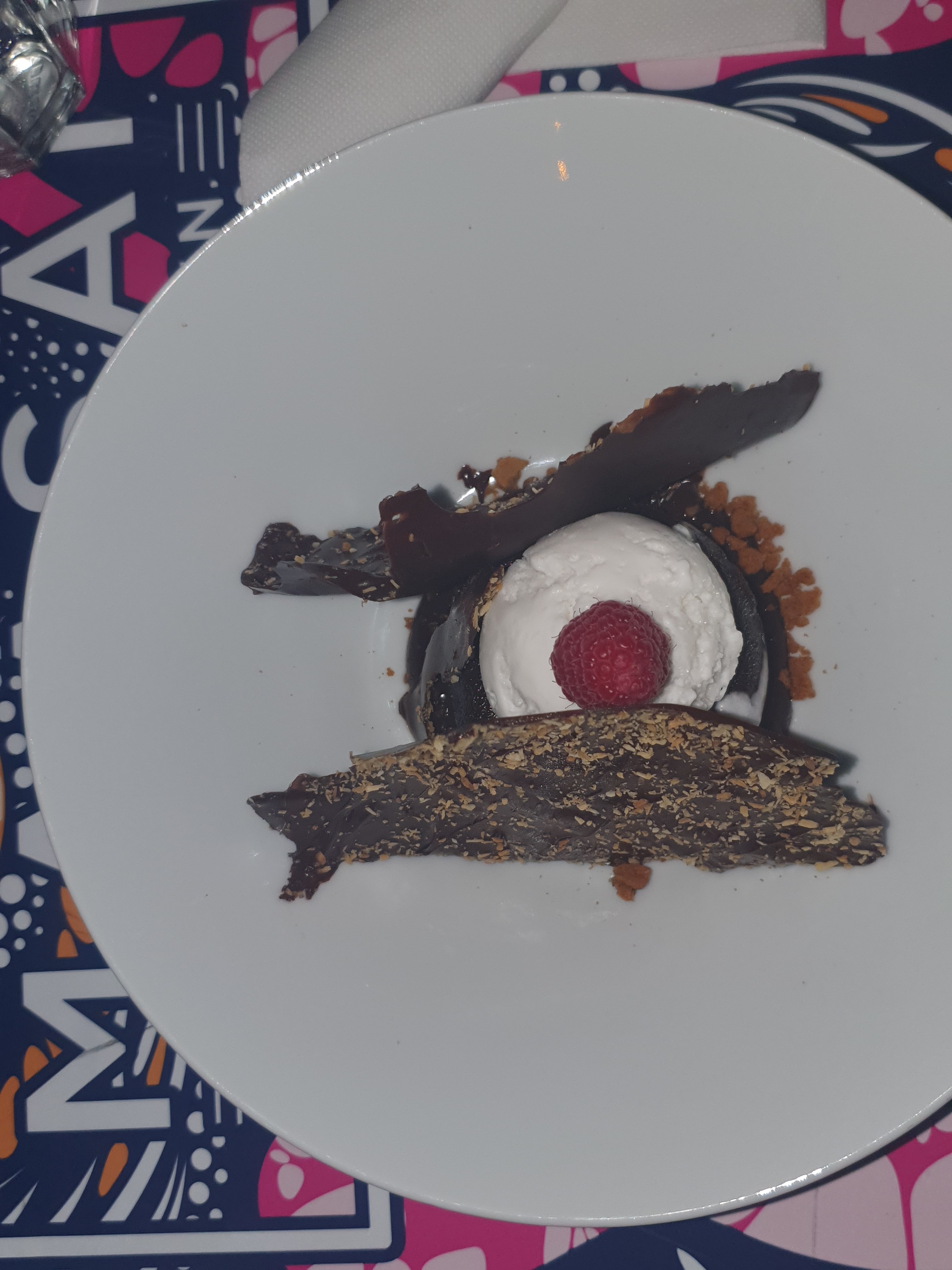 J'ai pris le poisson avec riz et aloco. C'était très bon, mention spéciale pour la sauce tomate délicieuse ! Mix kit chocolat bon Cocktail ans alcool bon aussi Bonne ambiance et jolie déco Par contre je trouve les tarifs un peu élevé Plat, dessert, cocktail sans alcool = 46€ Sinon jolie découverte
