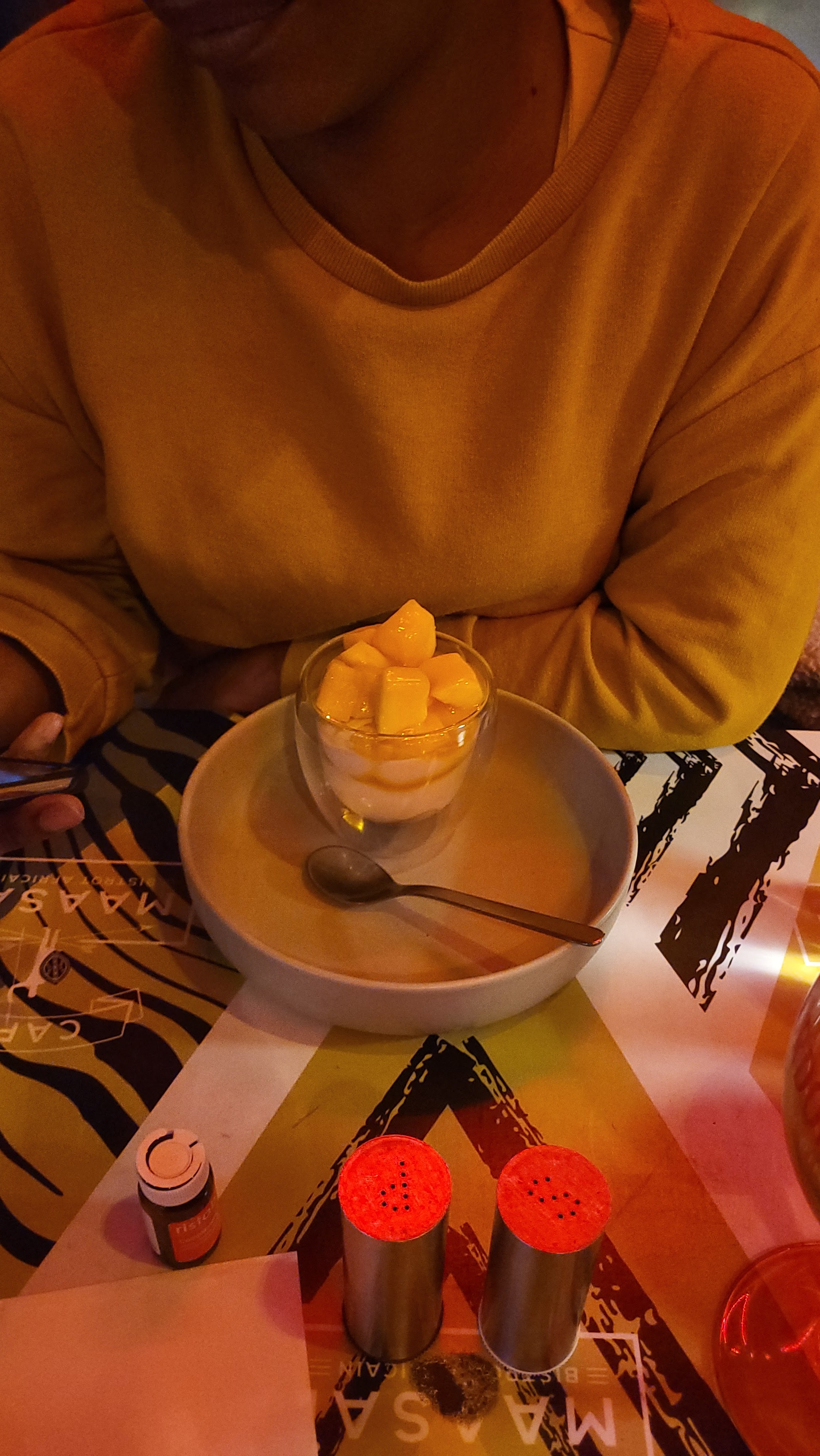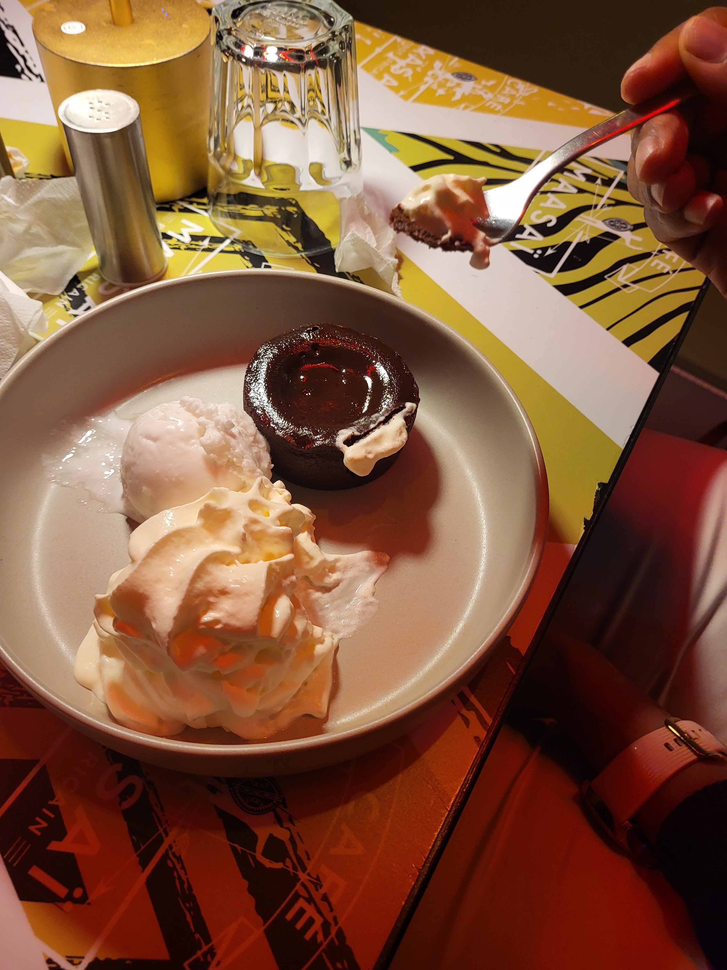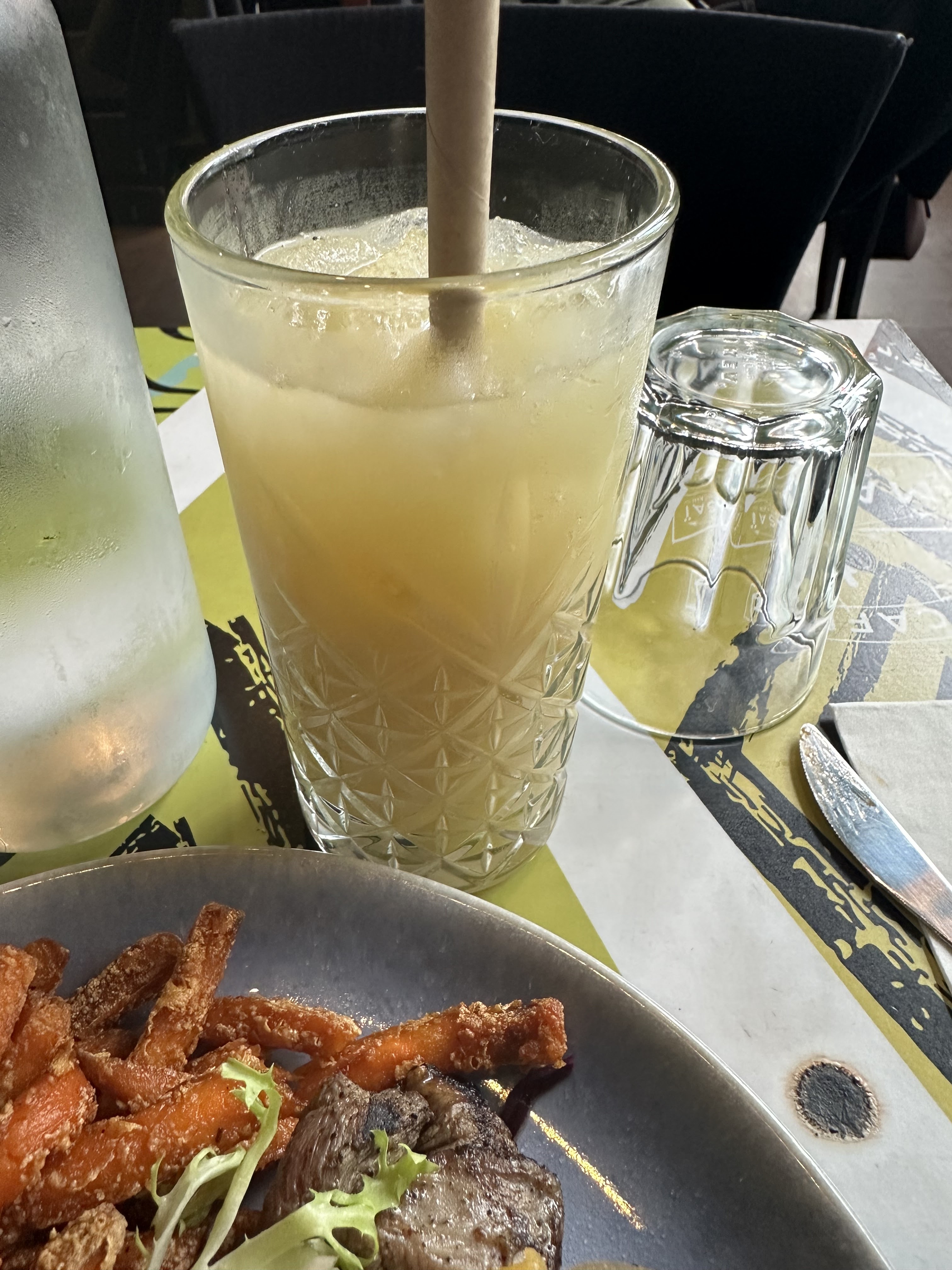Nos plats étaient trop salés, mon Ndole avait un léger arrière goût amer. C’est la deuxième fois que j’en prends et un peu déçu. J’aurais bien aimé qu’on me prévienne sur la quantité de mon cocktail à 12€ qui était remplie à moitié 😭. Si j’avais su, j’aurais fait comme mon amie, le mocktail remplis à ras bord. Elle l’a trouvé un peu trop sucré mais il était excellent selon ses dires