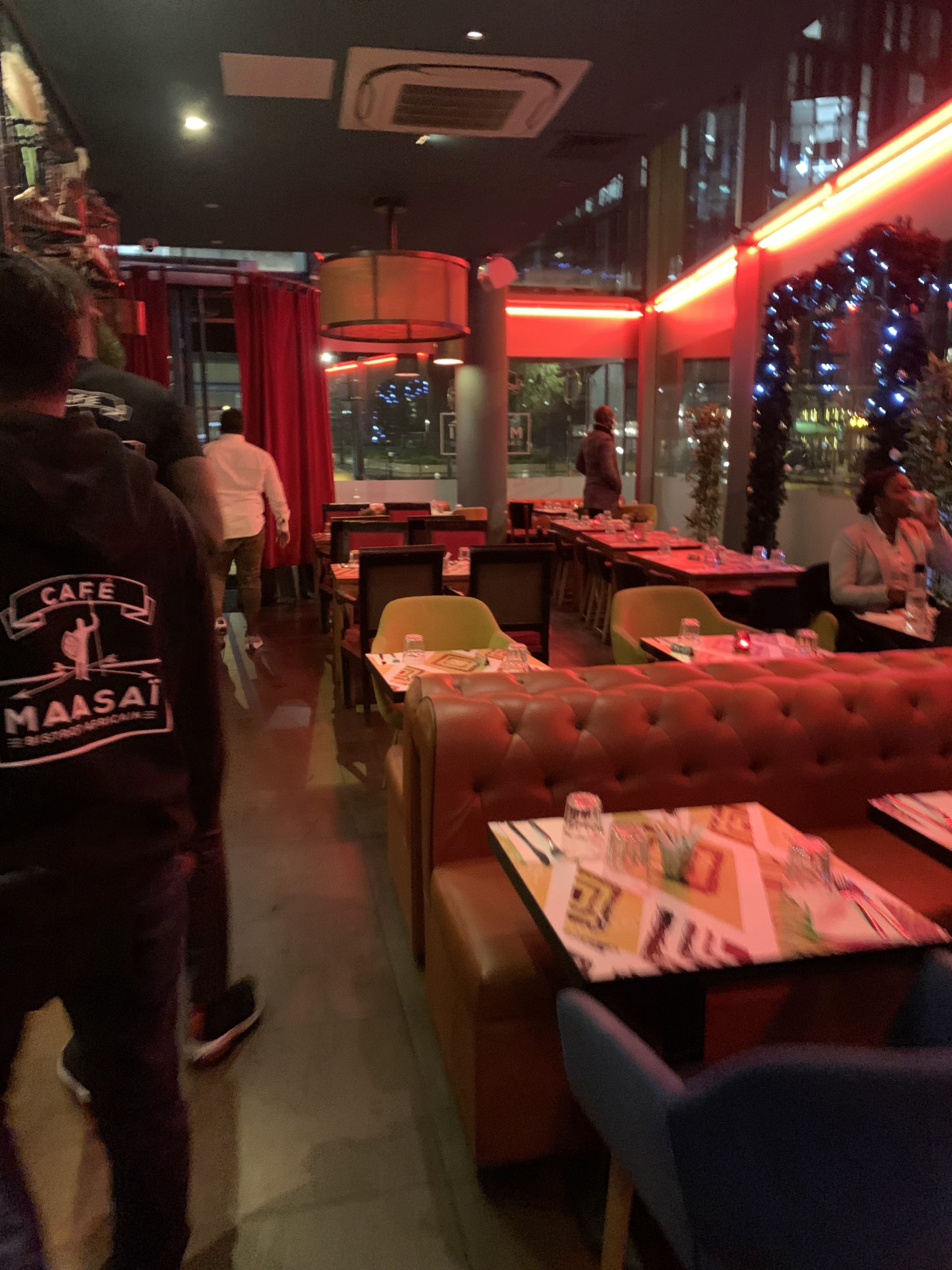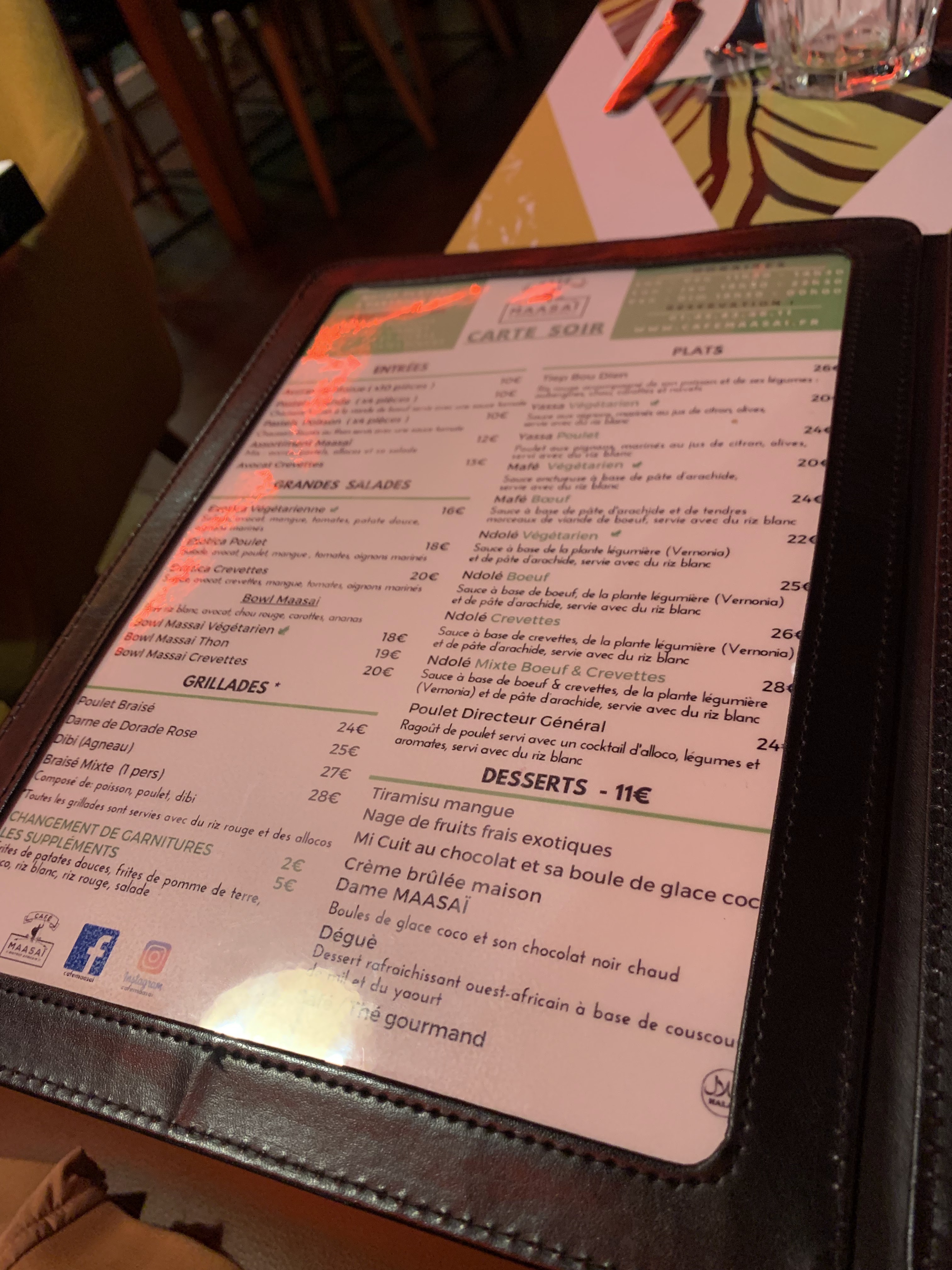 L'ambiance du restaurant est agréable et l'équipe accueillante. Nous avons pu profiter d'un bon moment en dégustant des spécialités africaines. Je recommande le Café Maasai