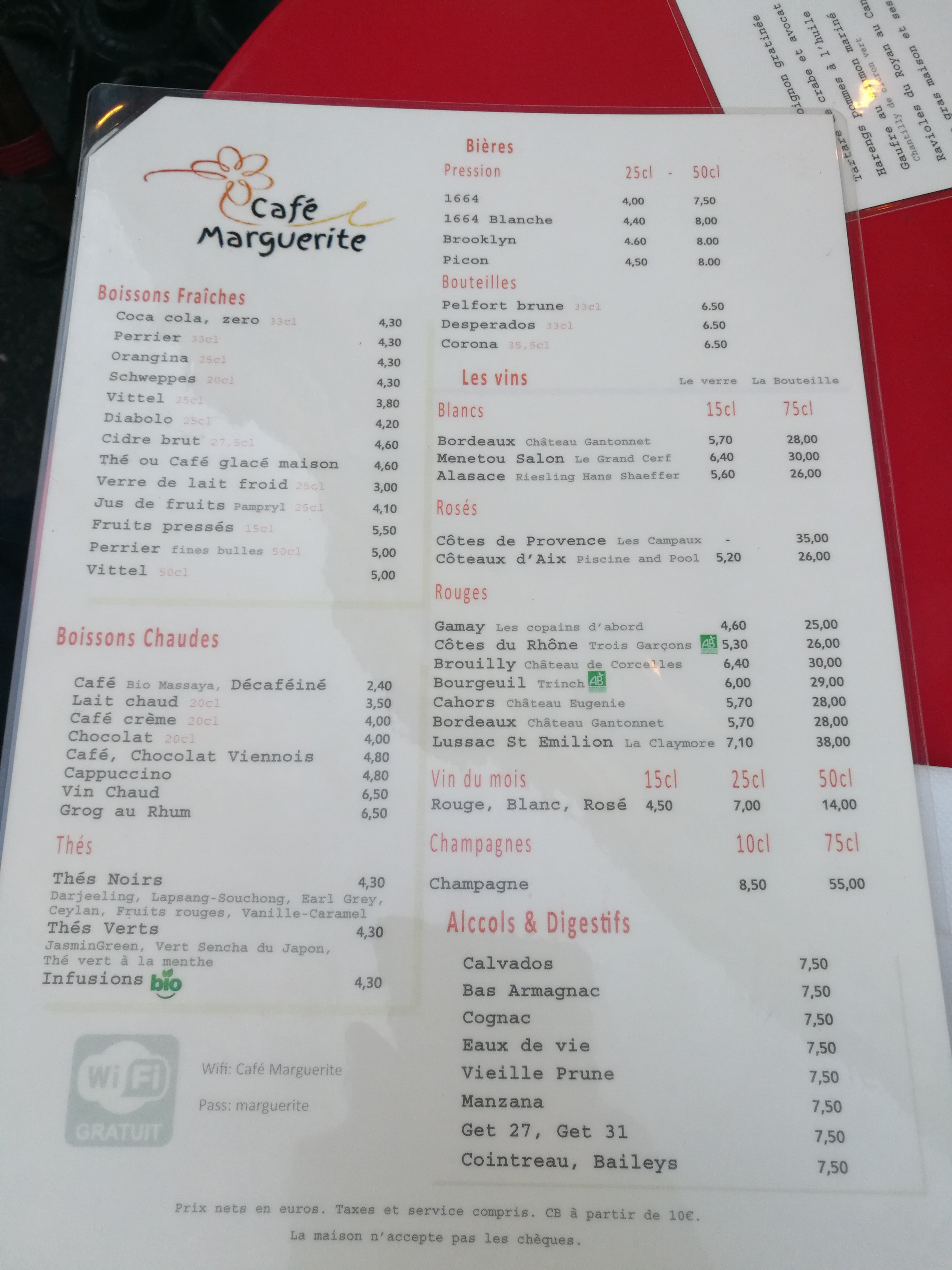 Une escale à Paris au café Marguerite. Le personnel est très aimable. Les plats très bons !! Je recommande les yeux fermés. Quoi de plus agréable que de manger un bout dans une bonne ambiance.