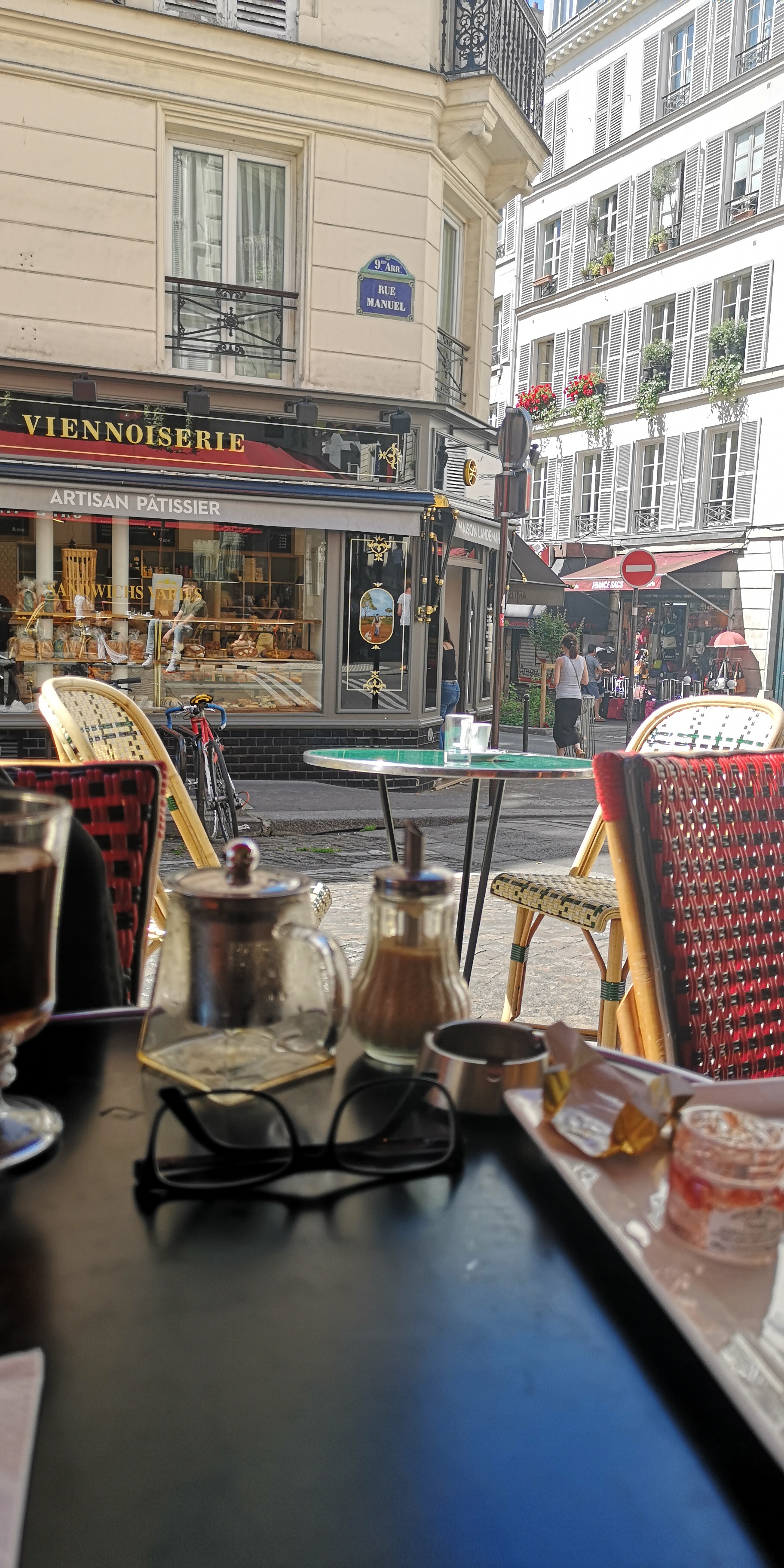 J adore prendre un café, un verre de vin, ou déjeuner : les frites sont très bonnes, j aime l ambiance de la terrasse et son orientation qui laisse à voir la foule éclectique de la rue des Martyrs défiler sous nos yeux. Les serveurs sont toujours aux petits soins, efficaces et gentils. C est un basic essentiel. Forcément une fois semaine minimum pour moi. Merci !