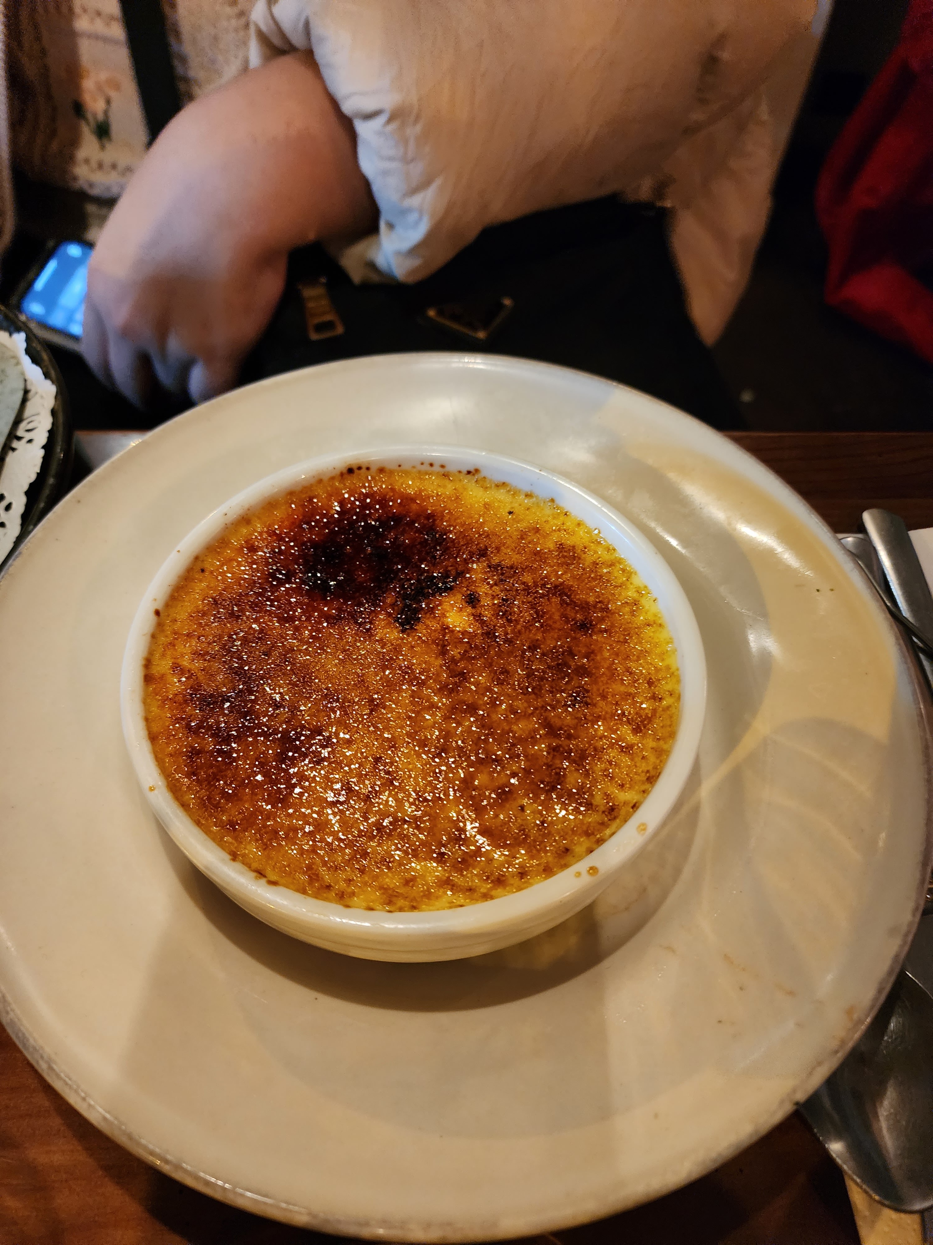 J'ai trouvé cet endroit par hasard après avoir recherché des restaurants proposant de la soupe à l'oignon au menu. oh mon Dieu, c'était vraiment le meilleur restaurant de notre visite de 5 jours. Chaque apéritif, de la moelle osseuse aux escargots, en passant par les salades, le plateau de charcuterie et la soupe, était incroyable. La cuisse de canard et le bar étaient également hors du monde ! Le personnel était également très accueillant et nous parlait anglais sans problème. La crème brûlée était hors de ce monde ! Je recommande vivement cet endroit !