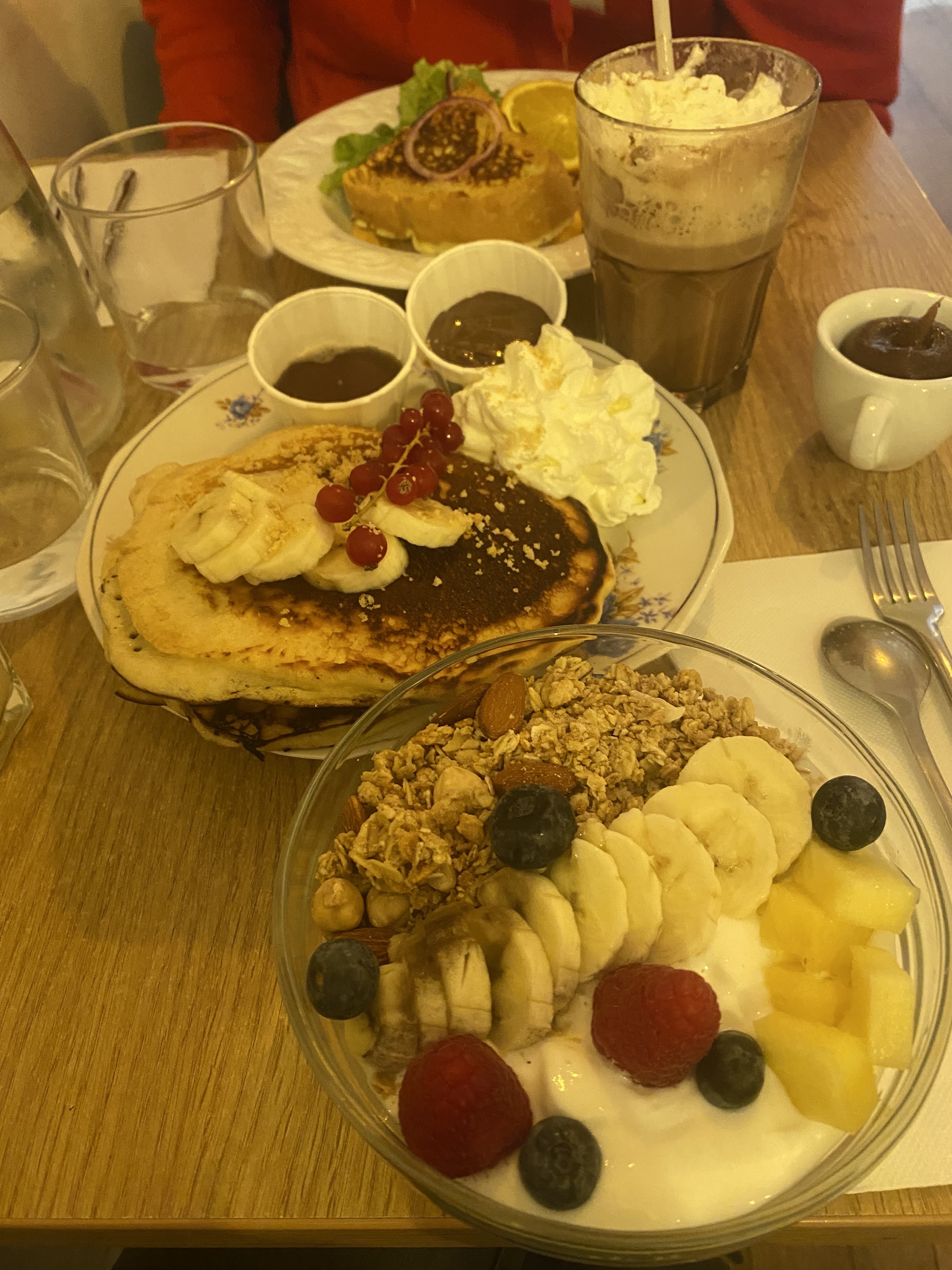 Endroit super sympa, on est arrivé on était un peu déçu de la terrasse devant mais quand il vous emmène derrière pour vous mettre à la grande terrasse c’est une belle surprise. Repas très bons et copieux. Pour les pancakes vous devriez rajouter beaucoup plus de fruits :) Merci
