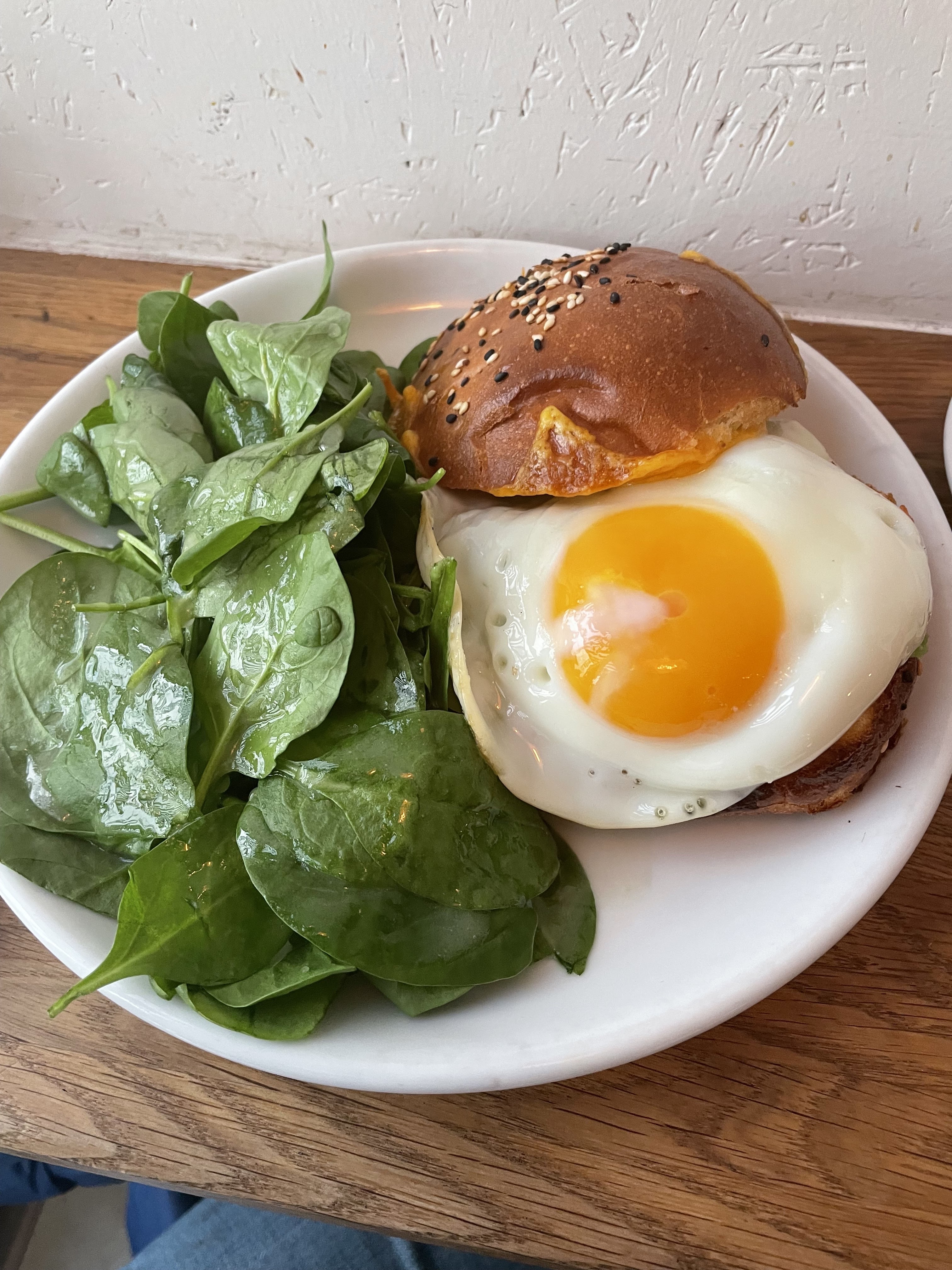 Le lieu est très mignon, un petit café ambiance bistrot parisien, parfait. Le service a été très agréable, à l'écoute, sympathique. La cuisine était extra, nous avons goûté les Green Eggs Feta & légumes verts, la foccacia et les tartines d'avocat, des jus frais, et du très bon café, c'était parfait ! La carte est courte mais variée, et il y a beaucoup de choix végétarien ou non, c'est top ! Seul petit bémol : l'un des employés en cuisine a fait des allers-retours au sous-sol, et nous n'avons pas pu nous empêcher de remarquer l'état déplorable et écœurant de ses chaussures... Extrêmement dommage vu la qualité du service et de la cuisine.