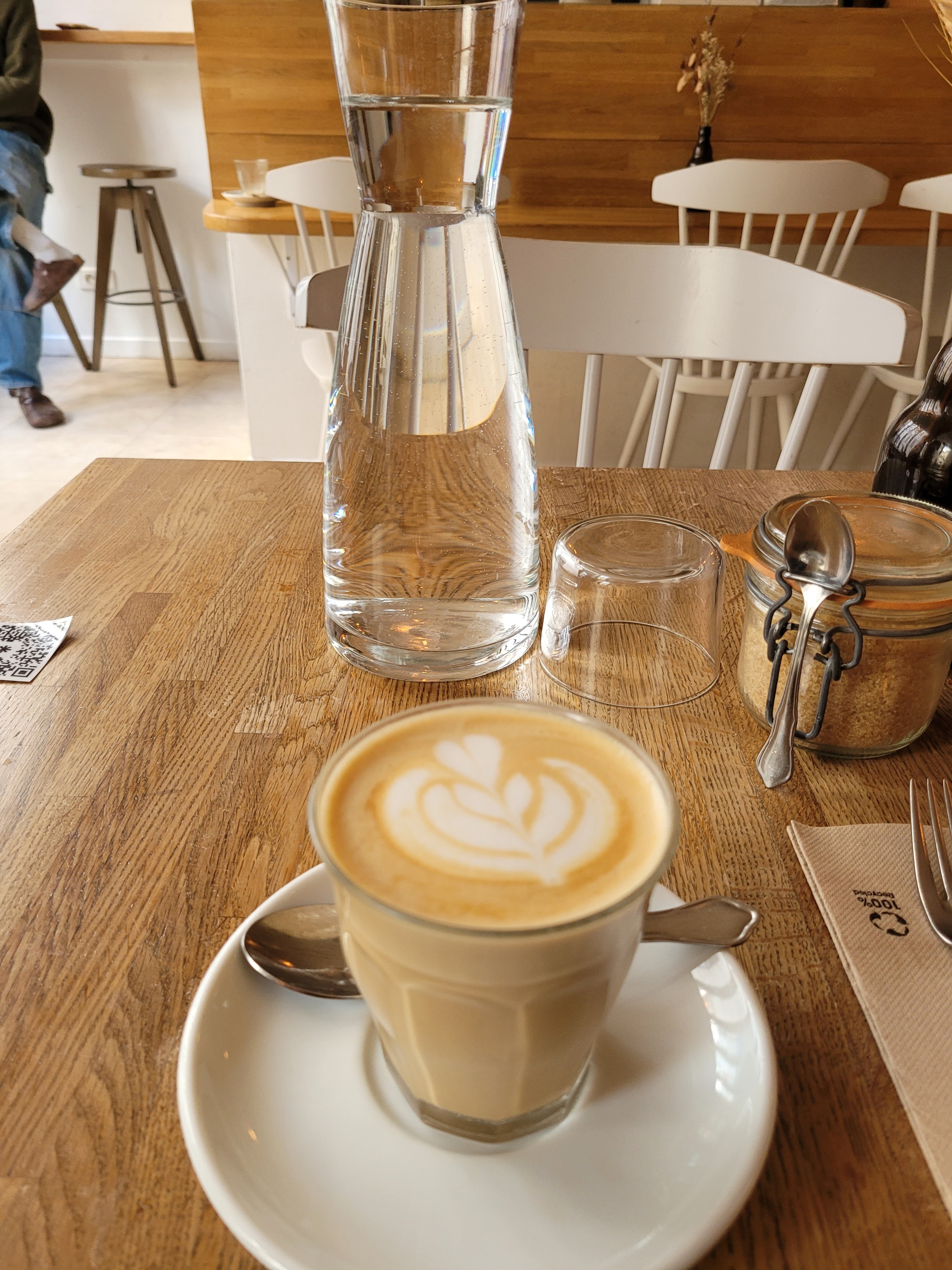 Ce café pittoresque mais charmant est l'endroit idéal pour prendre un petit-déjeuner/brunch. Avec des prix raisonnables, un excellent café et de délicieux aliments sains, qu'est-ce qui pourrait mal se passer ? Assurez-vous simplement de faire une réservation si vous décidez de venir, car il est petit et les visiteurs doivent normalement attendre environ 30 minutes jusqu'à ce qu'une table soit disponible. Vous pouvez effectuer des réservations en ligne pour vous éviter d’appeler ou si vous ne parlez pas français. Les menus sont également en anglais, si votre français n'est pas à la hauteur. Les plats salés sont servis à partir de 11h00 environ, si vous ne souhaitez pas uniquement manger des aliments pour le petit-déjeuner. La nourriture est servie comme si elle était déjà prête à être photographiée. Chaque petit détail est pensé avant d'être servi. Je recommande vivement cet endroit et j'y reviendrais.