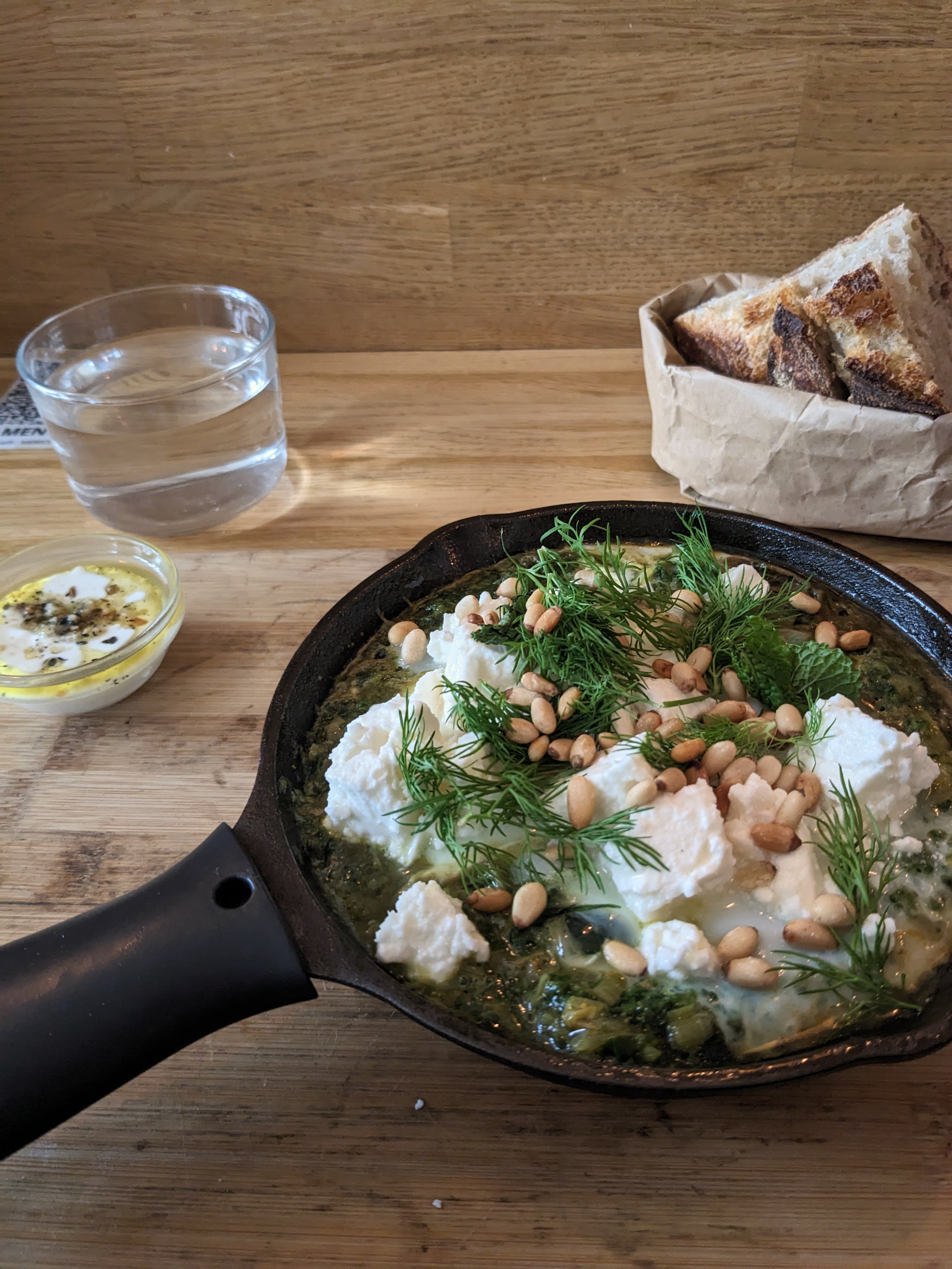 Endroit incroyable, j'adore l'ambiance, les gens là-bas et bien sûr la nourriture !! Nous avons commandé des œufs au four avec des épinards et de la feta. Tellement délicieux ! C'est sûr que je vais visiter cet endroit à nouveau! 🫶