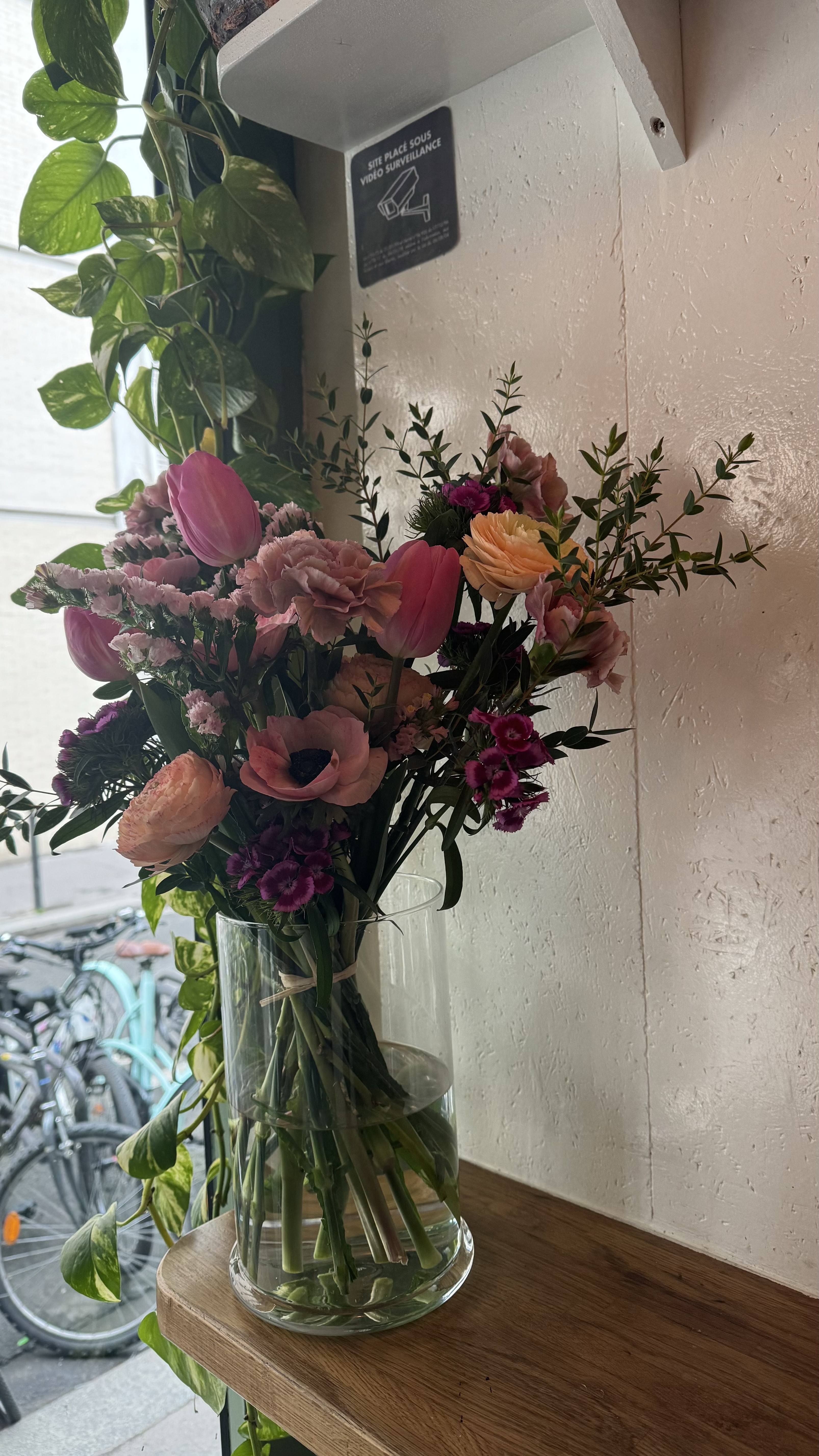 On y est passés complètement par hasard vers la fin de notre séjour parisien et quelle chance d'avoir trouvé une telle pépite ! Notre hôtesse Marion nous a traités comme de vrais amis en nous offrant de bonnes recommandations du menu. On a tant aimé, on a décidé d'y revenir le lendemain pour notre dernier petit déjeuner avant de repartir au Canada. Marion nous a trouvé une place malgré l'absence de préavis. Pour ne pas oublier ce moment spécial de notre visite on a acheté un vase porcelain créé à la main par un artiste local. La nourriture et le café sont délicieux C'est des gens comme ça qui nous convainquent de revenir encore à cette ville merveilleuse. Merci et à la prochaine !