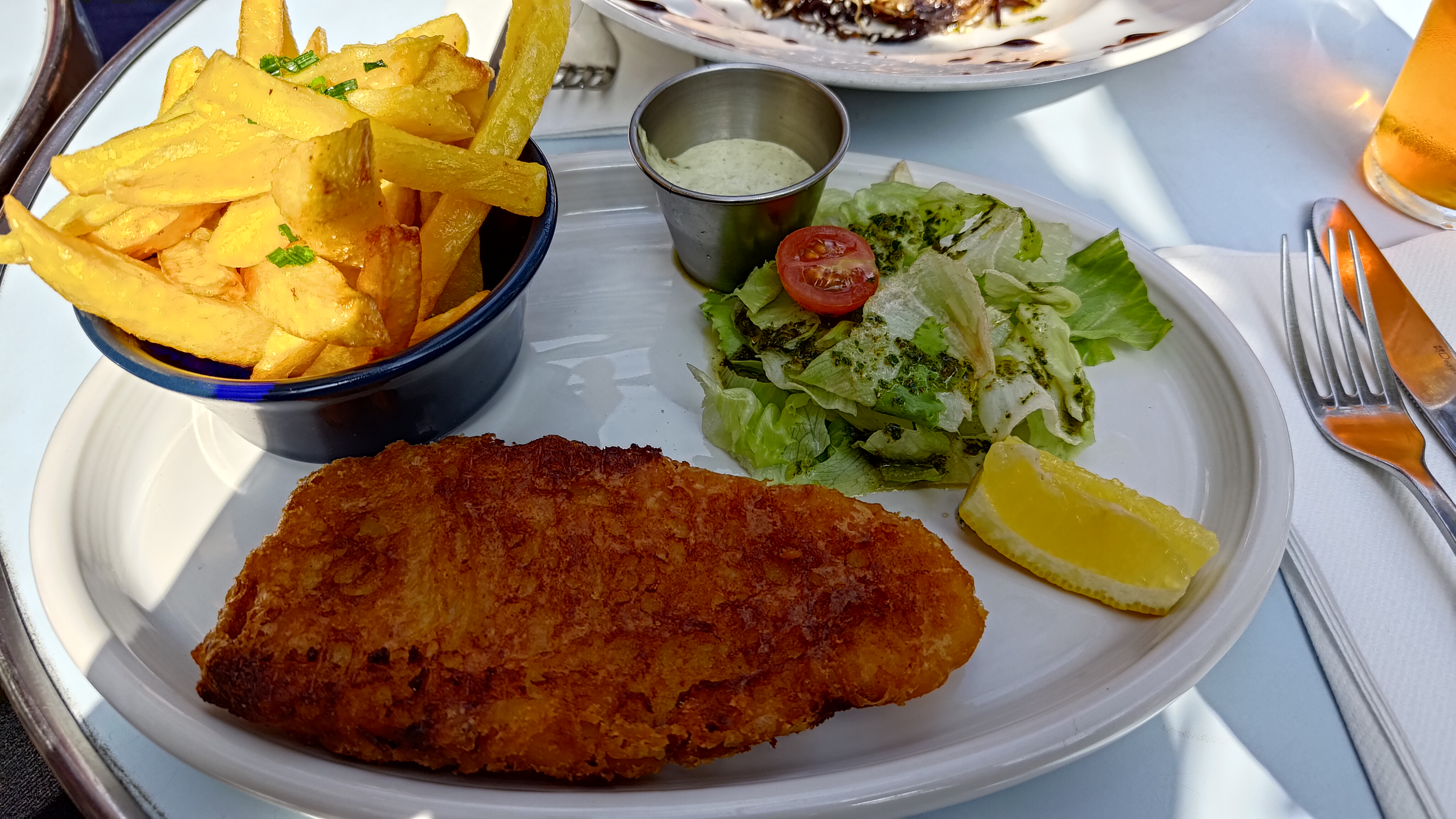 C'est peut-être Noël et il y a moins de monde et c'était agréable de manger et la sélection musicale était super ! J'ai eu du fish & chips et du Chakchouka. Pas tout à fait la chakchouka que j’avais habituellement. Le plat avait l'air simple, mais le goût était correct. Le service était correct, mais le serveur un peu lent et peu réactif.