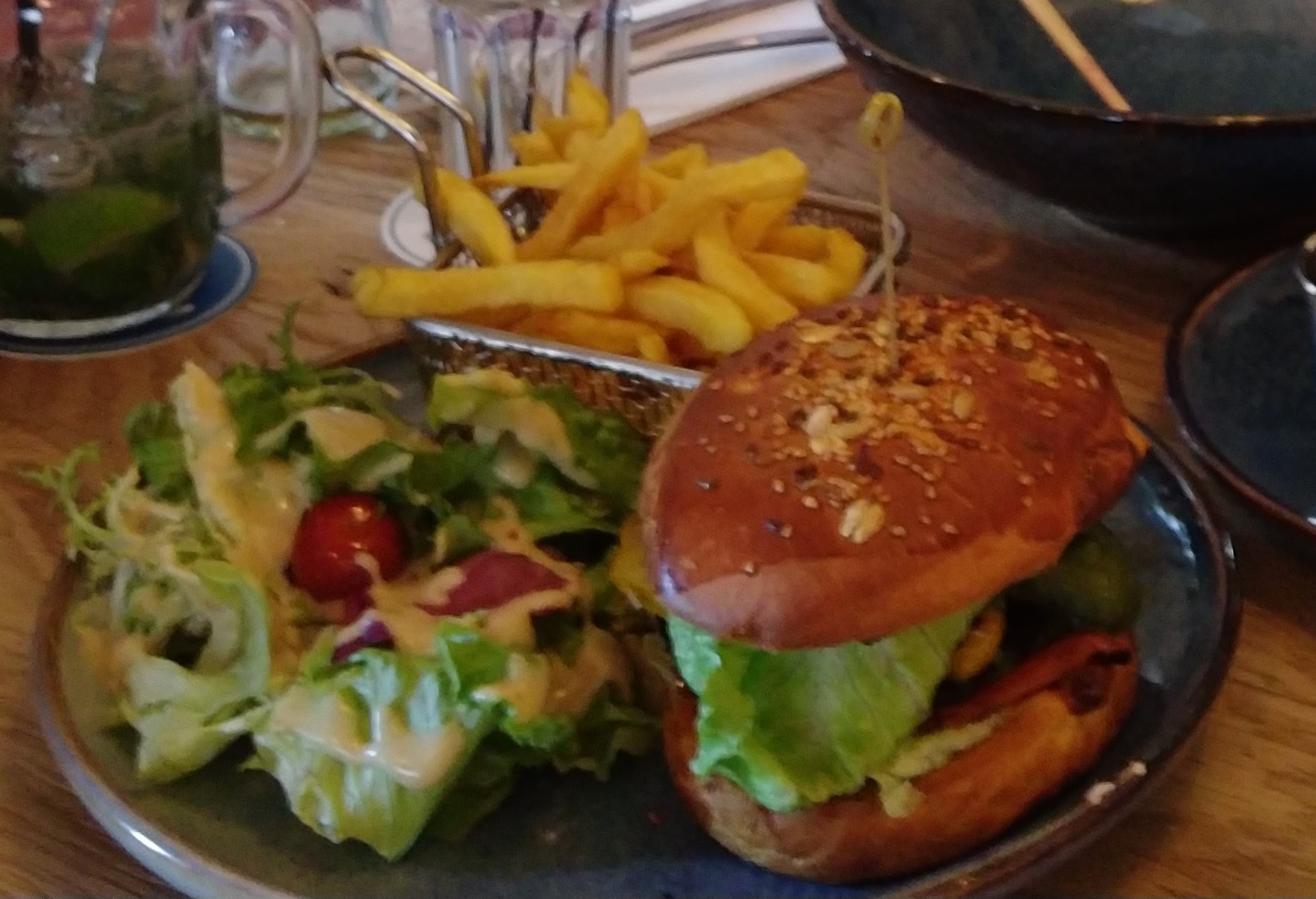Le café est joli, tout comme les assiettes mais le service n’est pas très agréable et assez long. J’avais l’impression de déranger. Néanmoins, la tartine tomate / fromage et pesto était bonne, les frites aussi. La tartine était accompagnée d’une sauce à la salade plutôt qu’une salade assaisonnée..