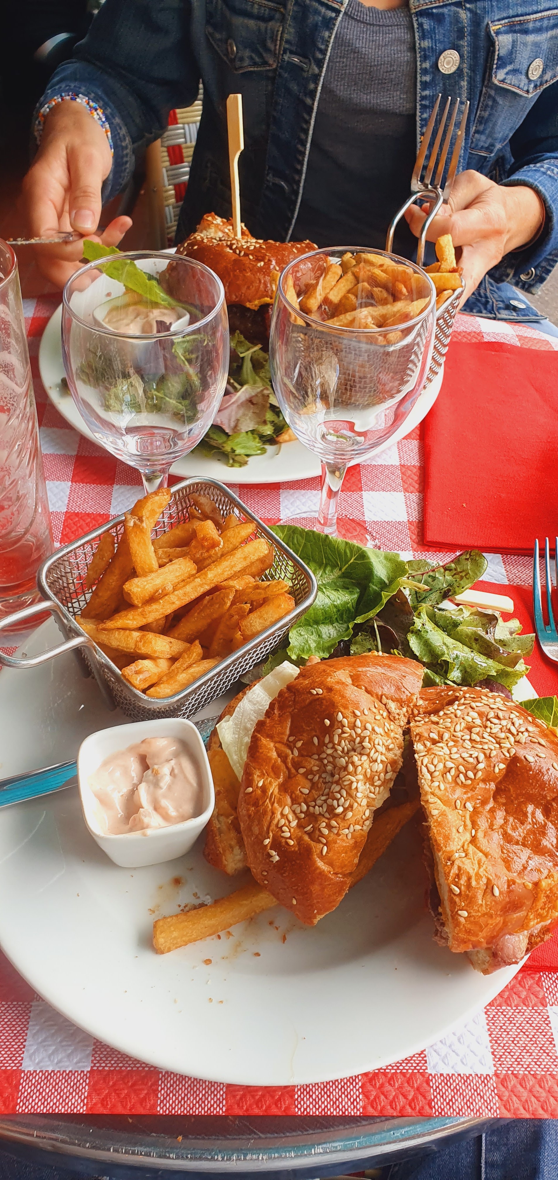 Désolé j'aurai préféré mettre 2 étoiles et demie, donc tout juste la moyenne pour 2 choses qui m'ont contrarié : La 1ère : des frites que je n'ai pas pu finir (et c'est rare et pourtant elles n'étaient pas nombreuses!) car elles avaient une forte odeur et goût d'huile... très usagée. La 2ème : la crème au chocolat insipide avec une texture peu agréable au palais. Sinon, pour le reste, hamburger accompagné de salades correct, sans plus. Pour les prix, 14,90 € pour un plat et un dessert ou une entrée et un plat me parait correct mais la qualité doit absolument être au rendez-vous. En conclusion, je suggère donc que le bain d'huile des frites soit changé plus régulièrement et qu'au niveau des desserts soit aussi proposé des fromages blancs, tartes, fruits.