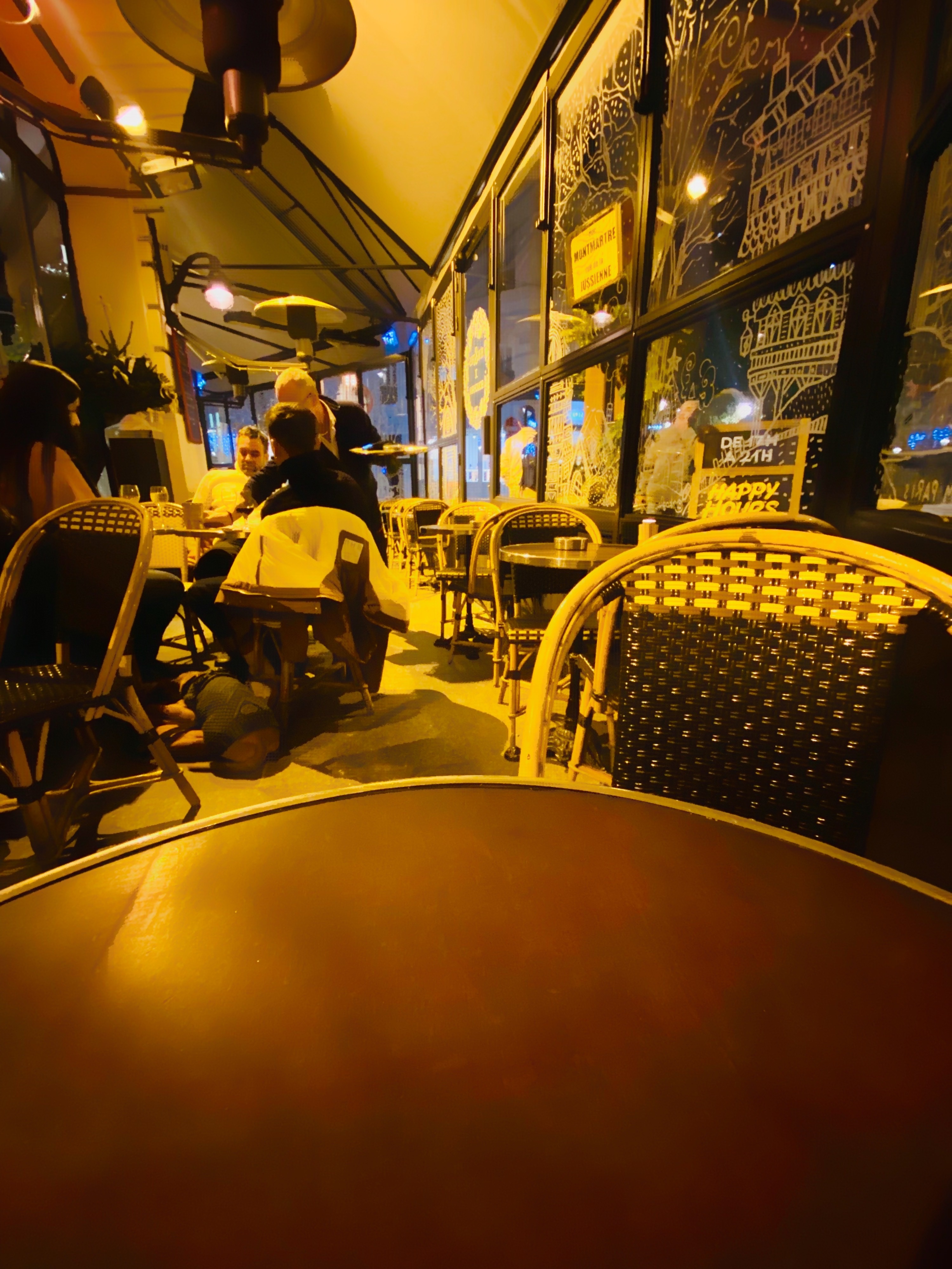 Paris 11:30 p.m., temperature -5 impossible to have hot chocolate or hot milk, we are only allowed a teapot with hot water and a tea bag, because supposedly they cleaned the coffee machine two before the closing is so French as a commercial attitude, fortunately for once the waiter is friendly… Paris 23h30, température -5 impossible d’avoir un chocolat chaud ou un lait chaud, on a droit à seulement une théière avec de l’eau chaude et un sachet de thé, parce que soit disant il ont nettoyé la machine à café deux avant la fermeture, c’est tellement français comme attitude commerciale, heureusement pour une fois le serveur est aimable…