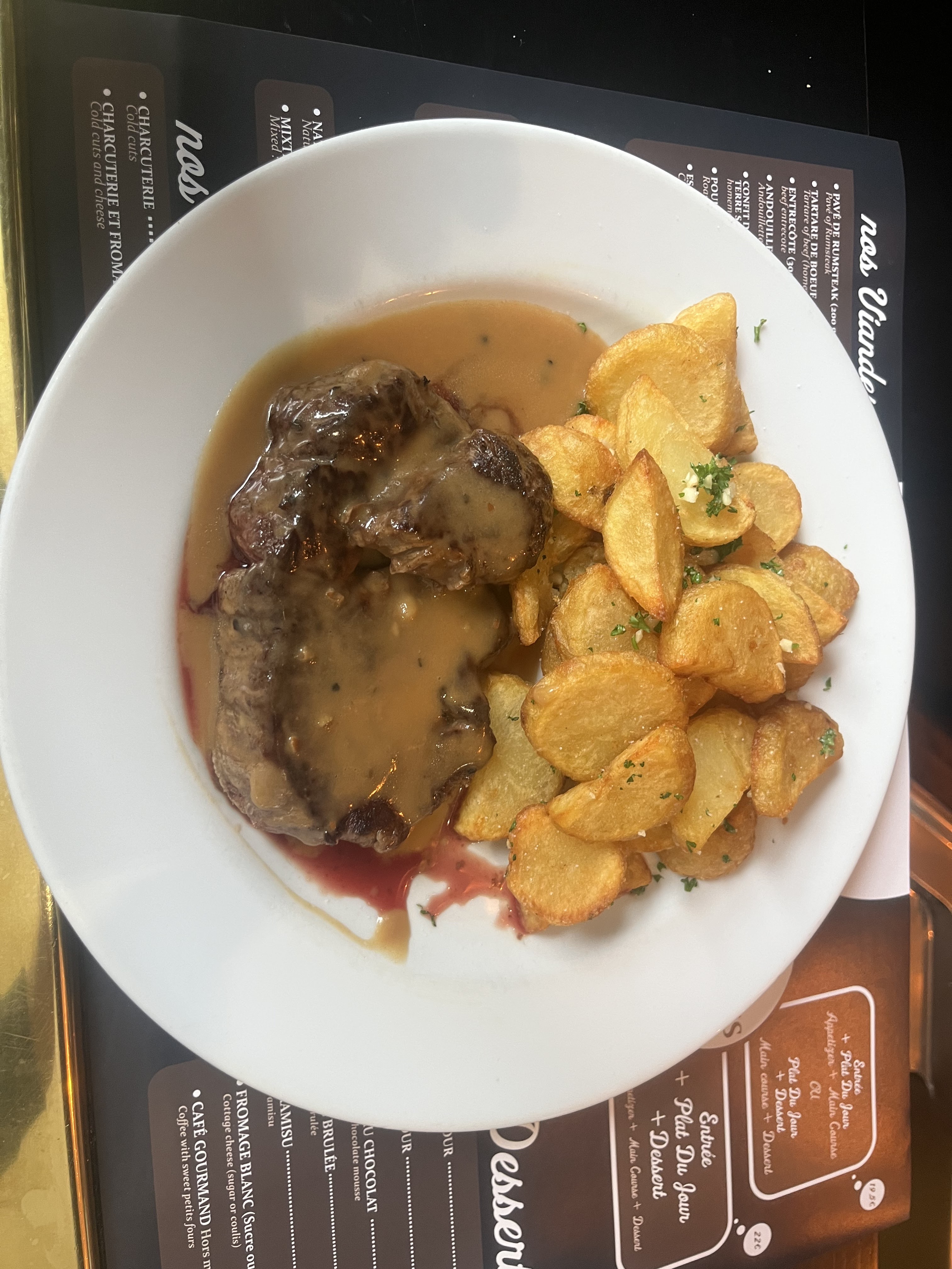 Parfait menu classique mais bon et d'un bon rapport qualité prix. Personnel et gérant sympathique. 👍👍👍