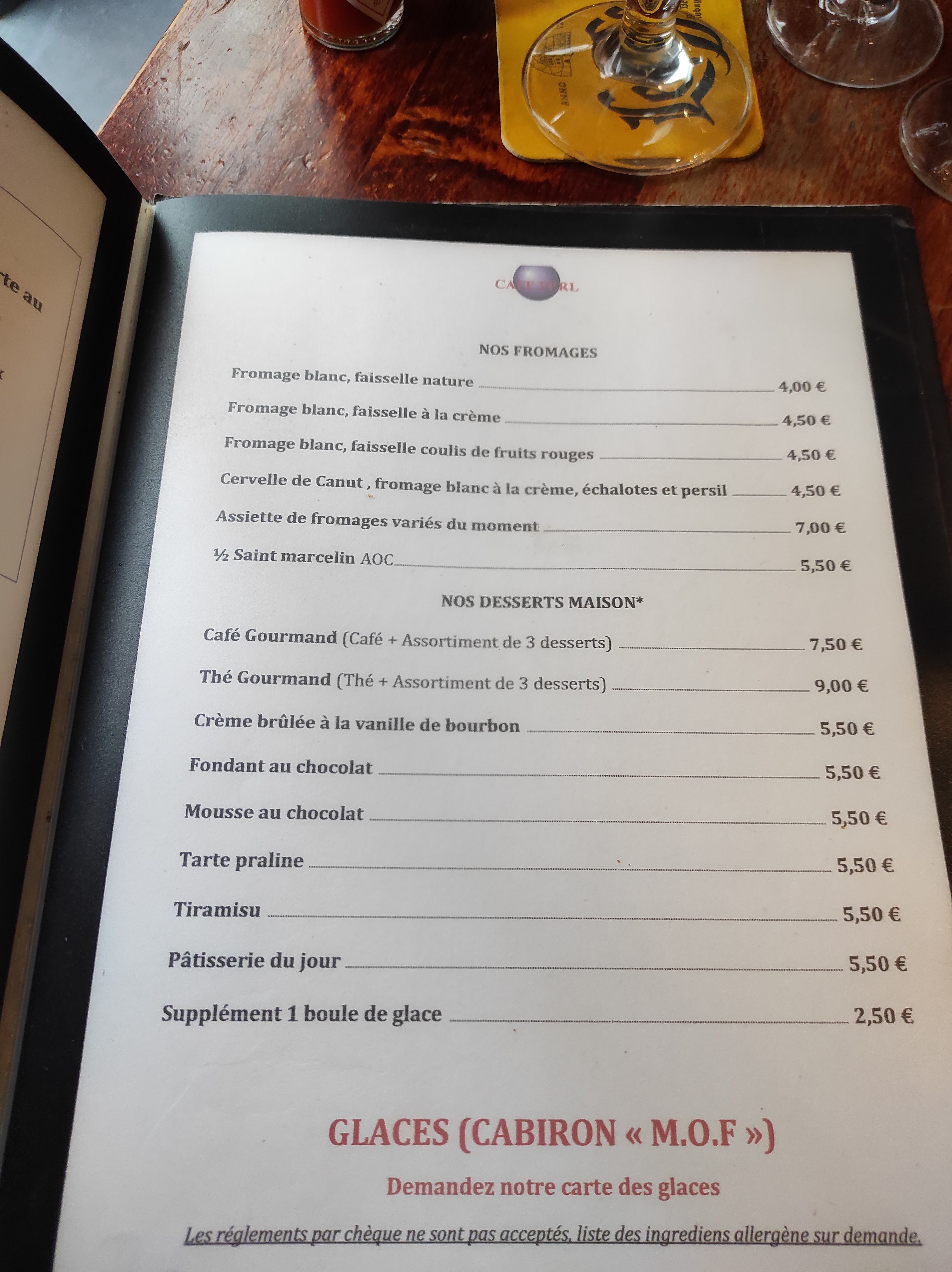 Niveau cuisine parfait. En l'occurrence le service de Aymeric reste à revoir .. service peu agréable pas d'eau pas de sel poivre pas de sourire étant de la restauration je trouve ça dommage. Pour finir aucun pass sanitaire nous a été demandé .