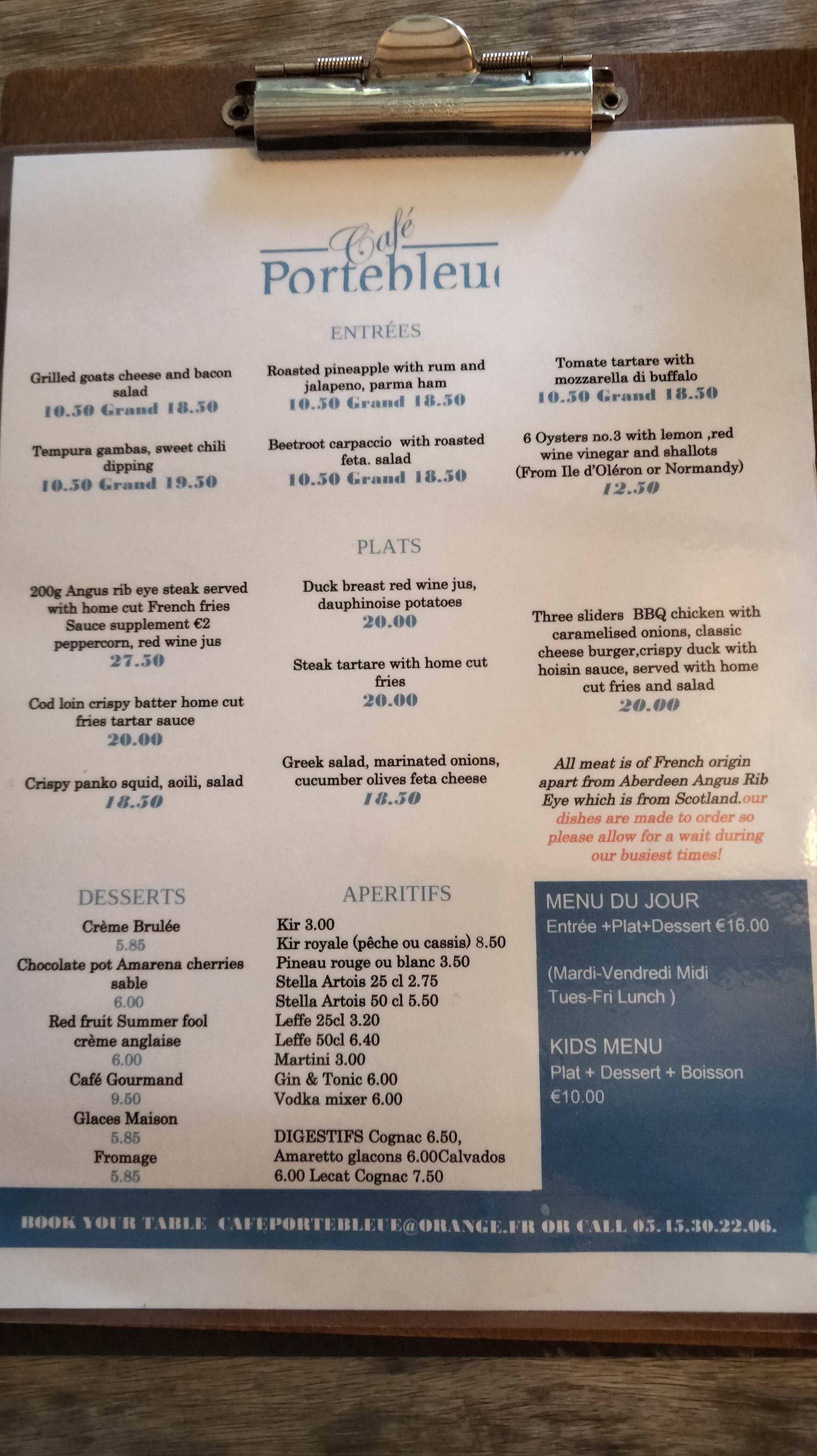 Excellente expérience au Café Portebleue. Salle chaleureuse et belle pour dîner Le personnel était sympathique et serviable et le service était extrêmement fluide Nous avons pris le menu du midi qui était d'un excellent rapport qualité/prix et la nourriture était bien préparée et très savoureuse. Travaillant nous-mêmes dans l'hôtellerie, nous apprécions sortir pour nous faire plaisir et cela a certainement coché toutes les cases pour nous. La crème brûlée était la meilleure à ce jour ! Merci.