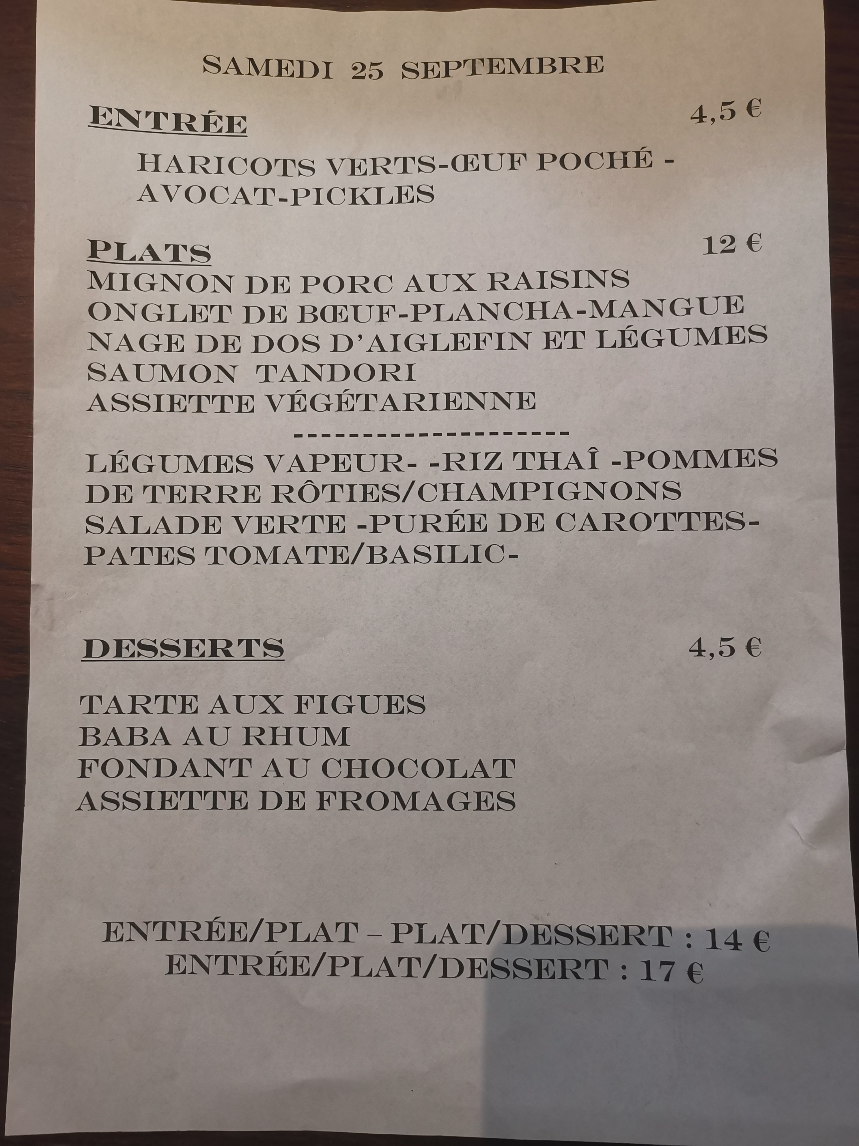 Nourriture délicieuse pour un prix fixe de 17 euros 3 plats !!!!!
