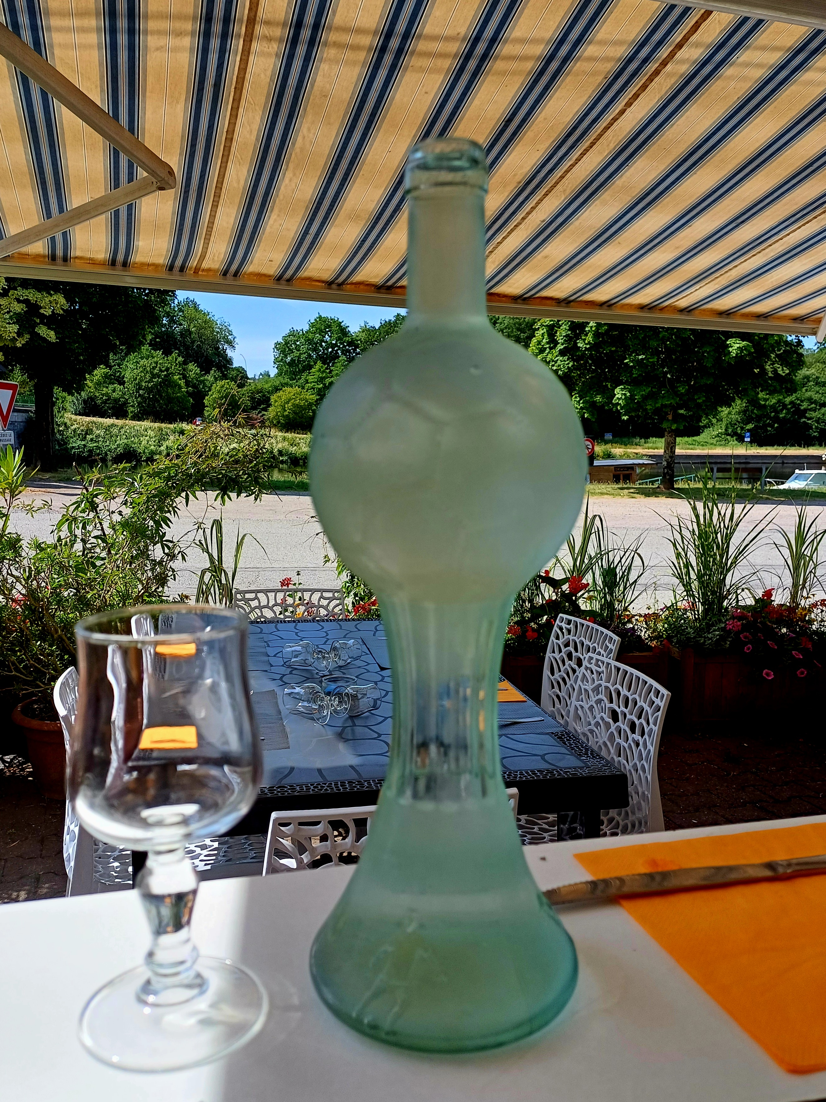 Un café et un restaurant au charme fou, magnifiquement situé au bord de la rivière, service extrêmement sympathique et sympathique, pas cher, très bonne carte du midi, tout est fait maison, quiconque voyage sur le canal en bateau ou traverse la ville en vélo ou en voiture ne le fera pas. je regrette d'être venu ici
