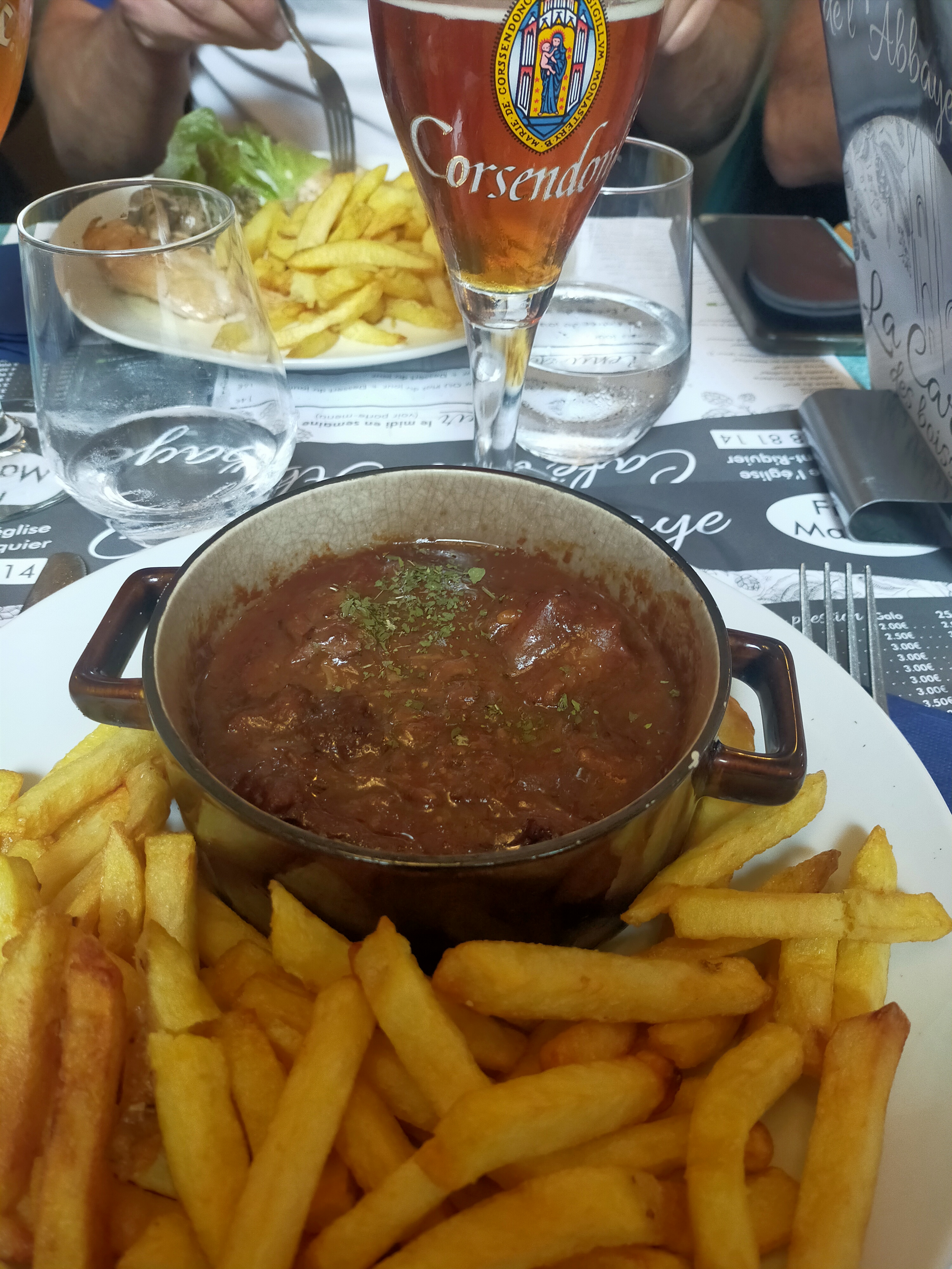 Entre 2 chasses au trésor à l'abbaye, je prends une petite pause dans ce café restaurant. Venant du Nord, j'ai bien envie de prendre une saucisse frites. Et c'est alors 2 belles chipolatas, grillées comme il faut, qui sont servies avec de très bonnes frites. Je me suis régalé. Cela me donne envie de prendre un repas au restaurant la prochaine fois. Et merci aussi pour le service.