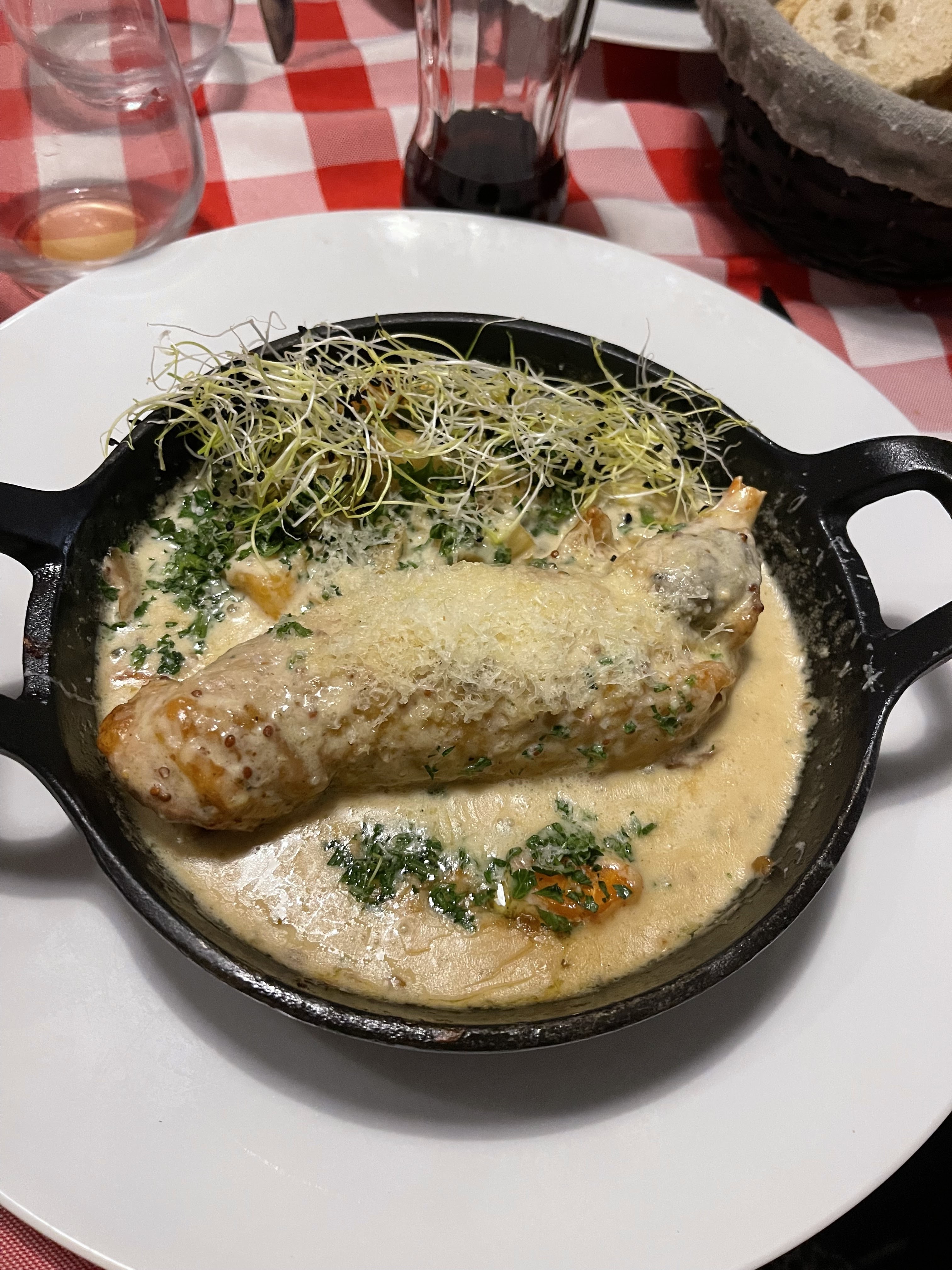 Jamais déçus! Le menu varie selon les saisons tout en gardant certains plats. Un pour régal à chaque passage! En photo : L' oreiller de la belle Aurore en entrée: un délice de saison et local de surcroît....
