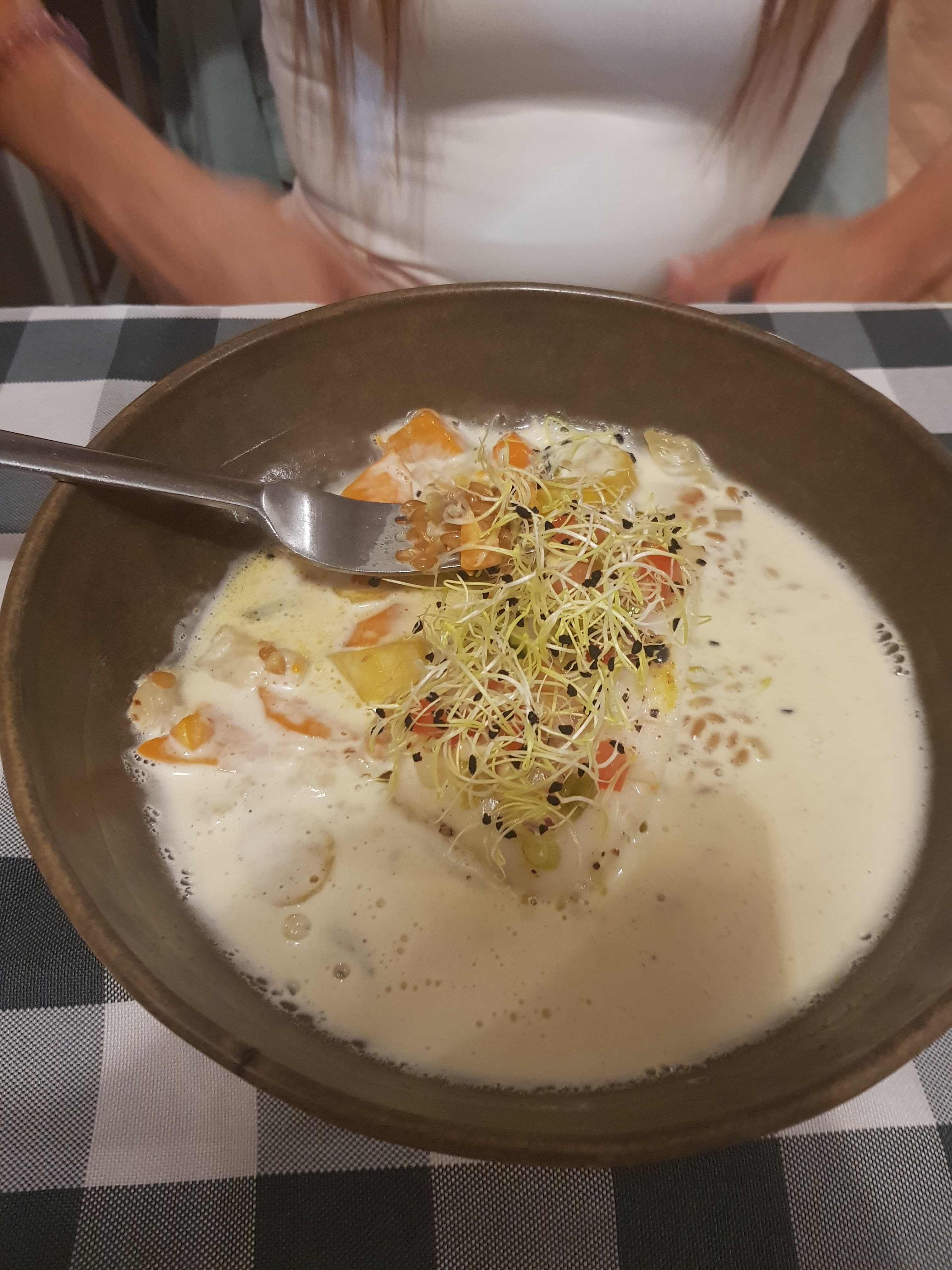 Très cher pour ce que c'est, faire payer un forfait par couvert en plus du menu est une arnaque, je cherchais un repas léger et rapide et visiblement ça n'a pas plu à la maison 🤑