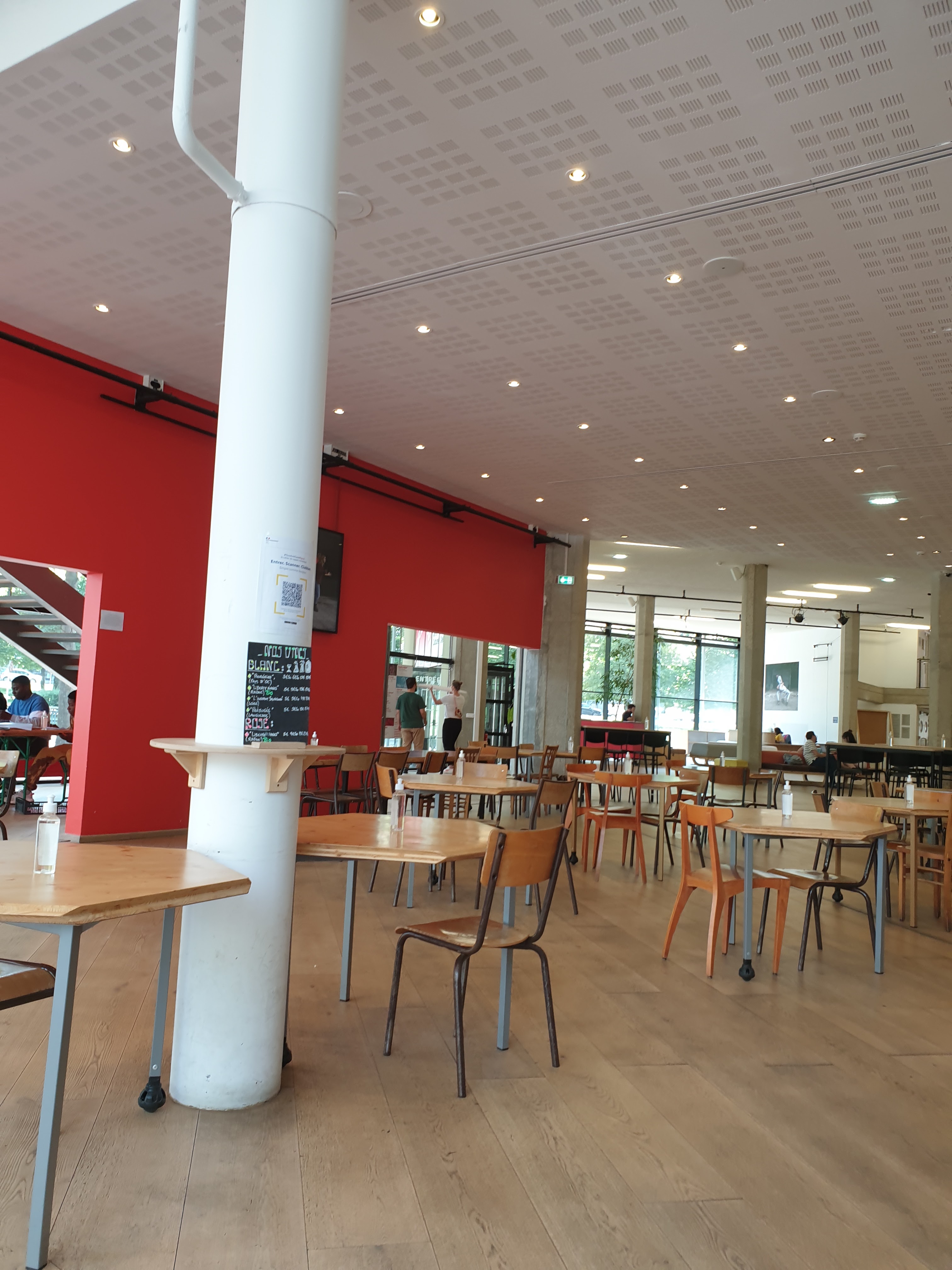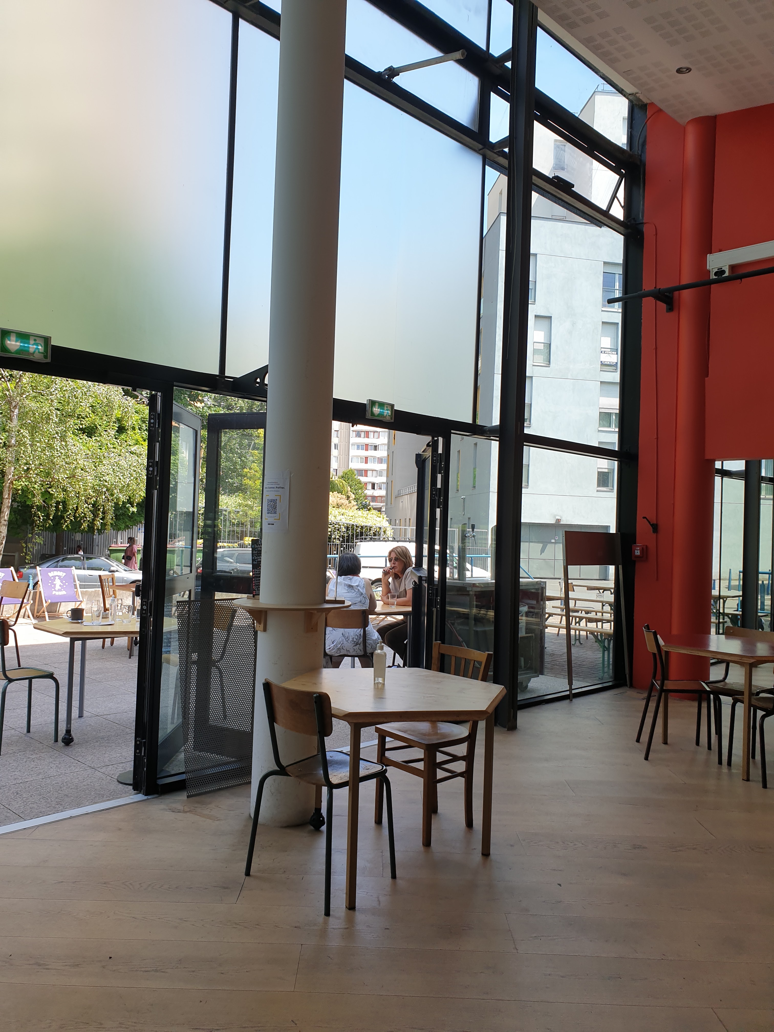 C'est un lieu spacieux lumineux agréable avec une belle terrasse en ce moment avec des transats très bien ventilée La carte est originale et très variée chaque jour avec des produits frais C'est vraiment très bon Plat à 13 ou 15 euros Entrée 6 euros et dessert 6 euros également Cadre agréable dans la MC93 qui propose une programmation vraiment géniale pour tous les goûts pour petits et grands