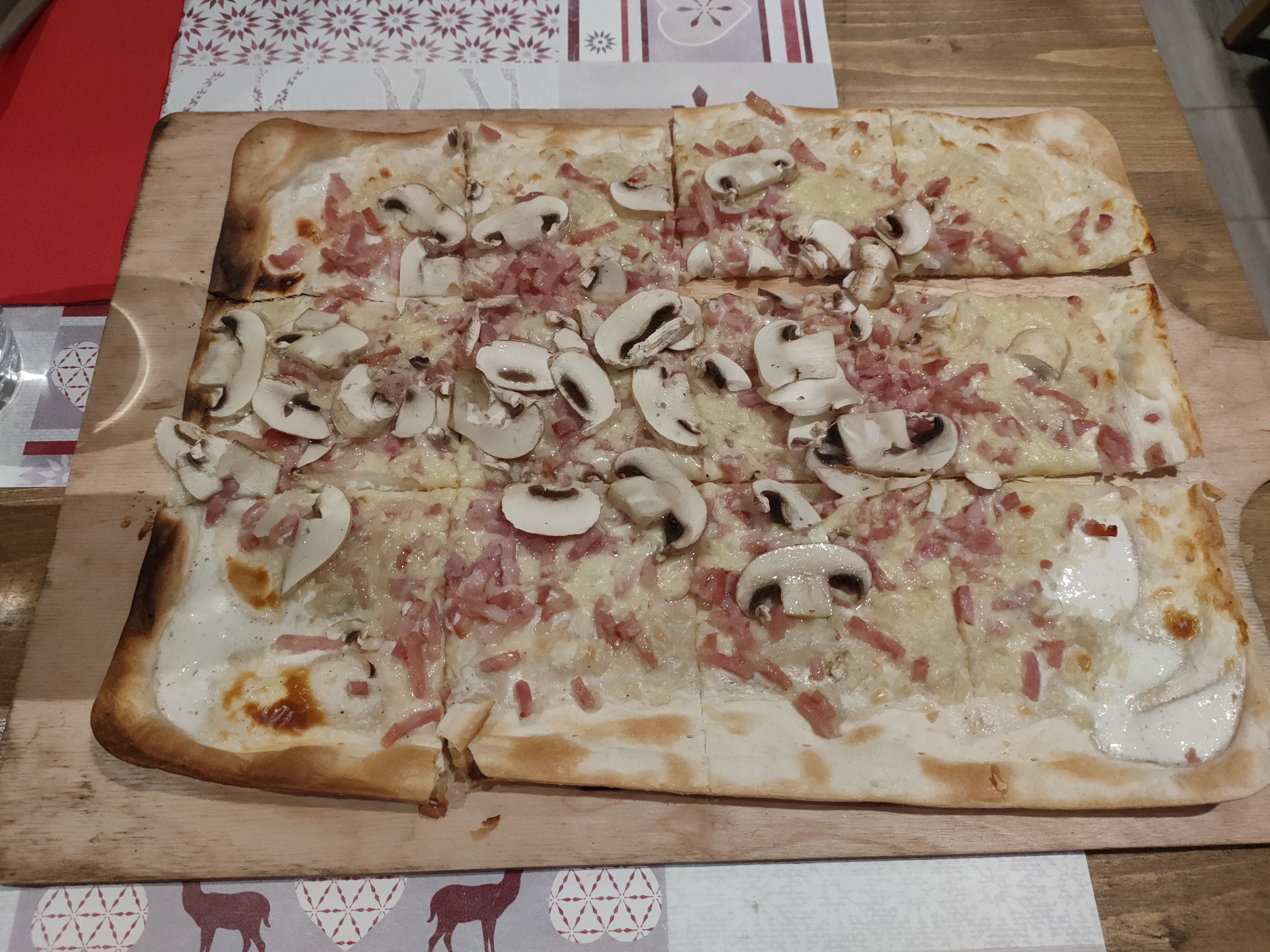 Délicieuse tarte flambée, bonne bière de Noël, super service !
