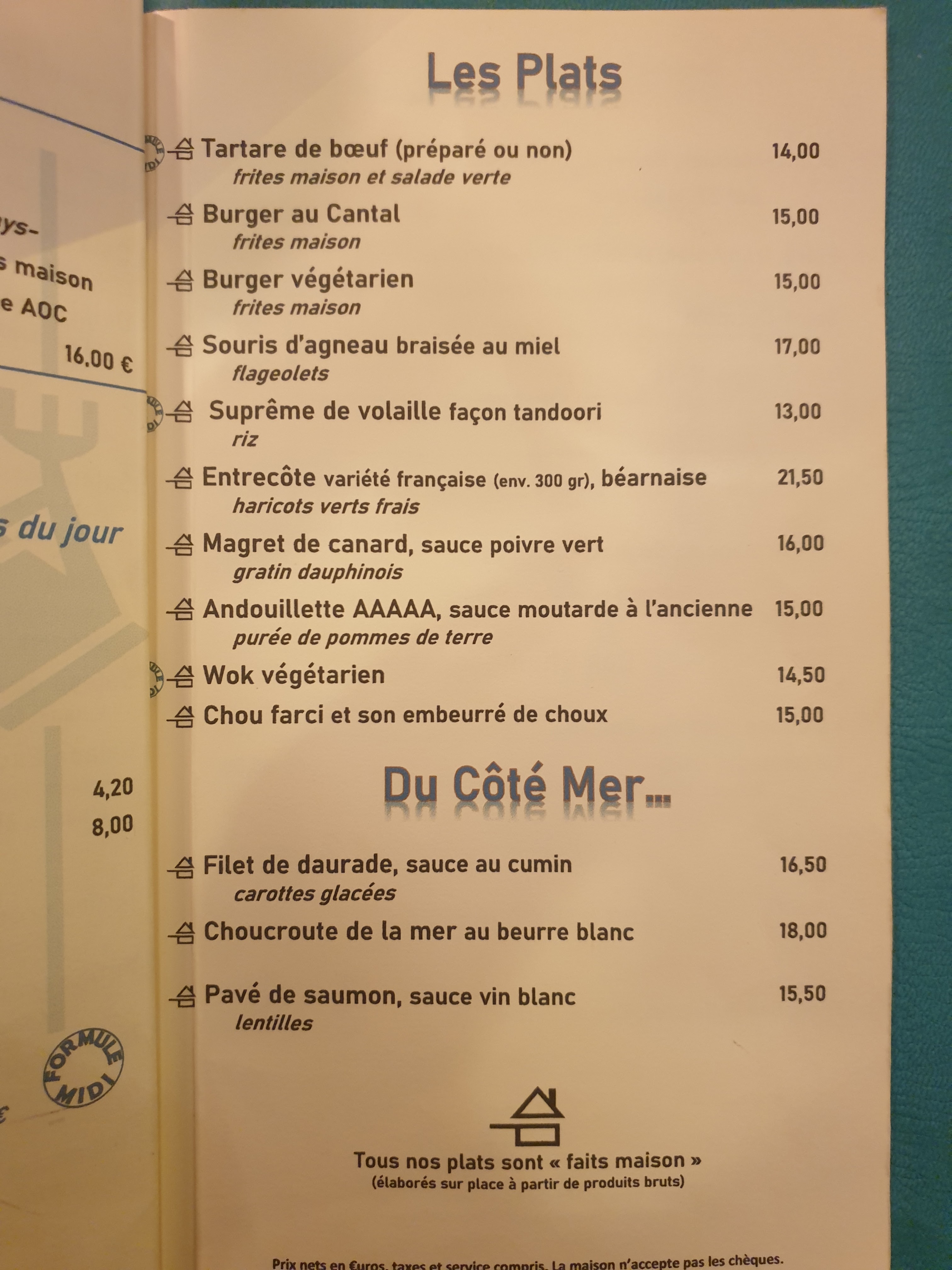 L'entrecôte a 24€ est à déconseiller; trop grasse ! Certains plats sont très copieux et d'autres pas assez. L'accueil est très correct. Rapport qualité/prix décevant.