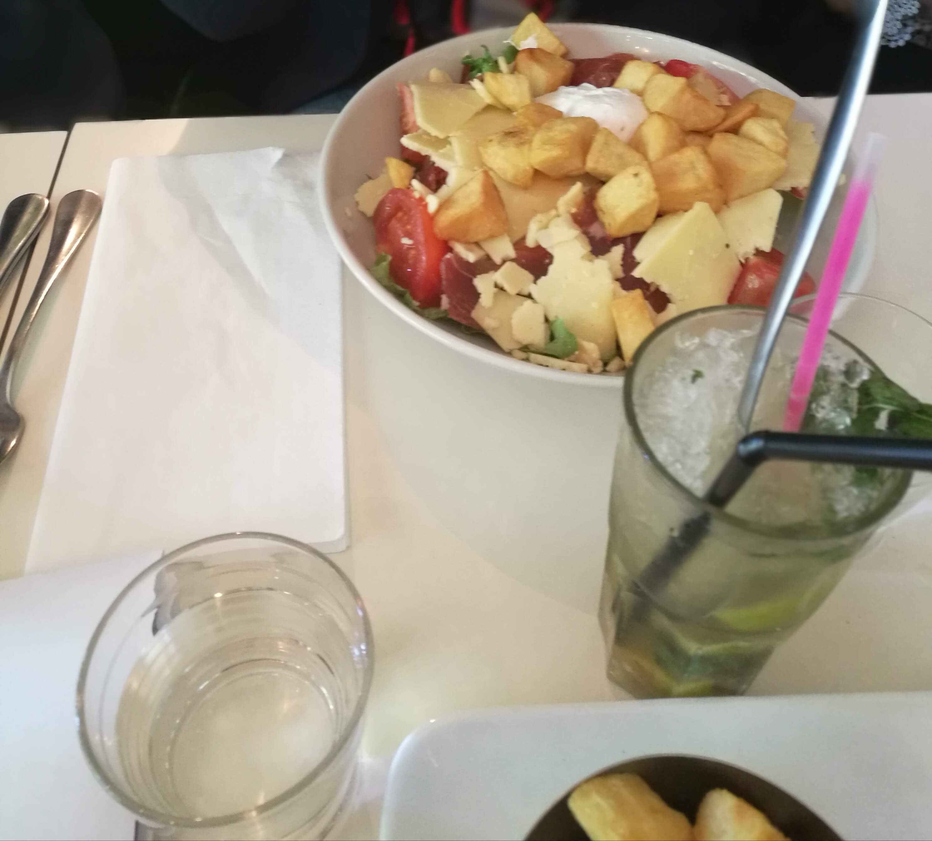 La salade était très bonne. Nous n'avions pas beaucoup de temps pour déjeuner car nous devions prendre le train et ils se sont occupés de nous rapidement et de manière accueillante. Hautement recommandé!