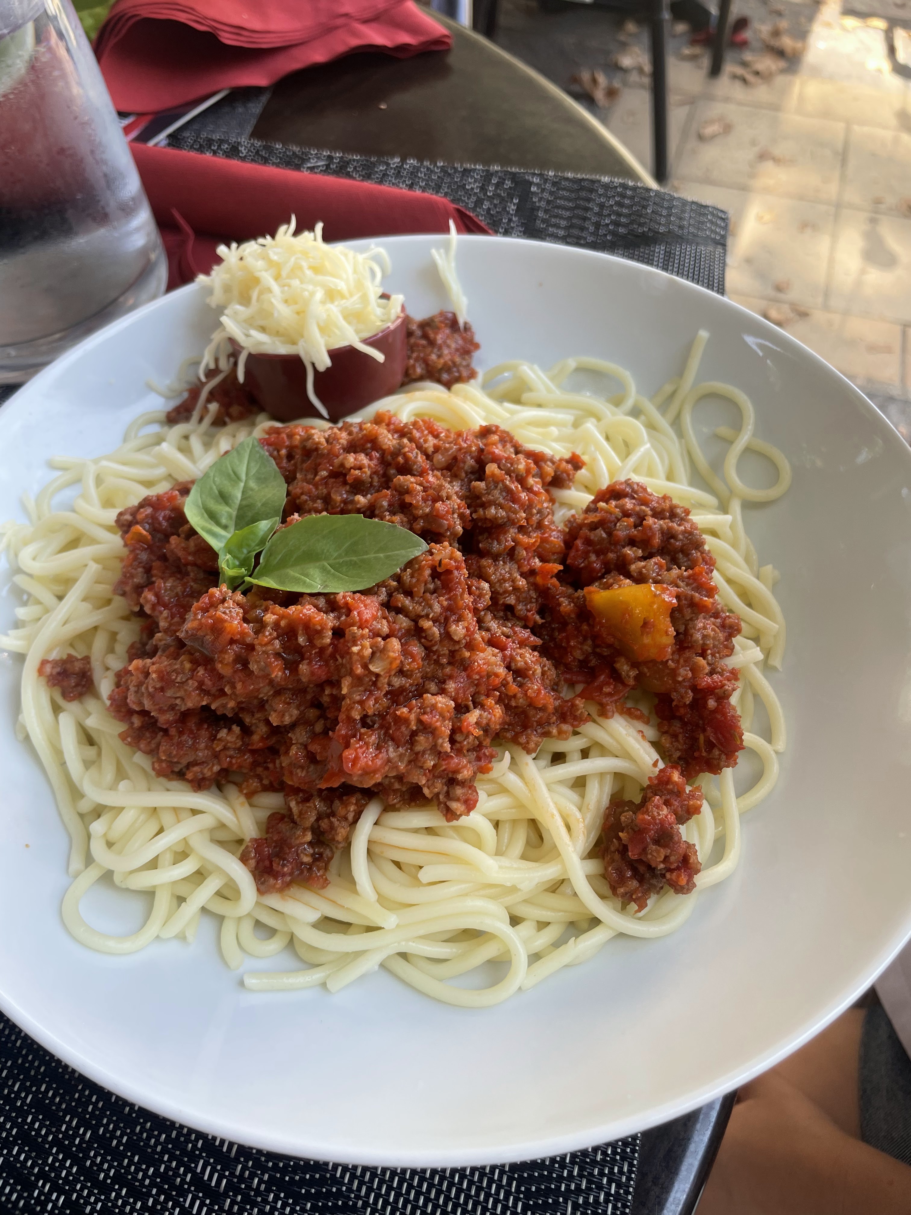 Dommage que l'eau des plantes sur la terrasse supérieure ai coulé dans mon assiette tt le temps du repas. Ne pas jouer les Roméo.