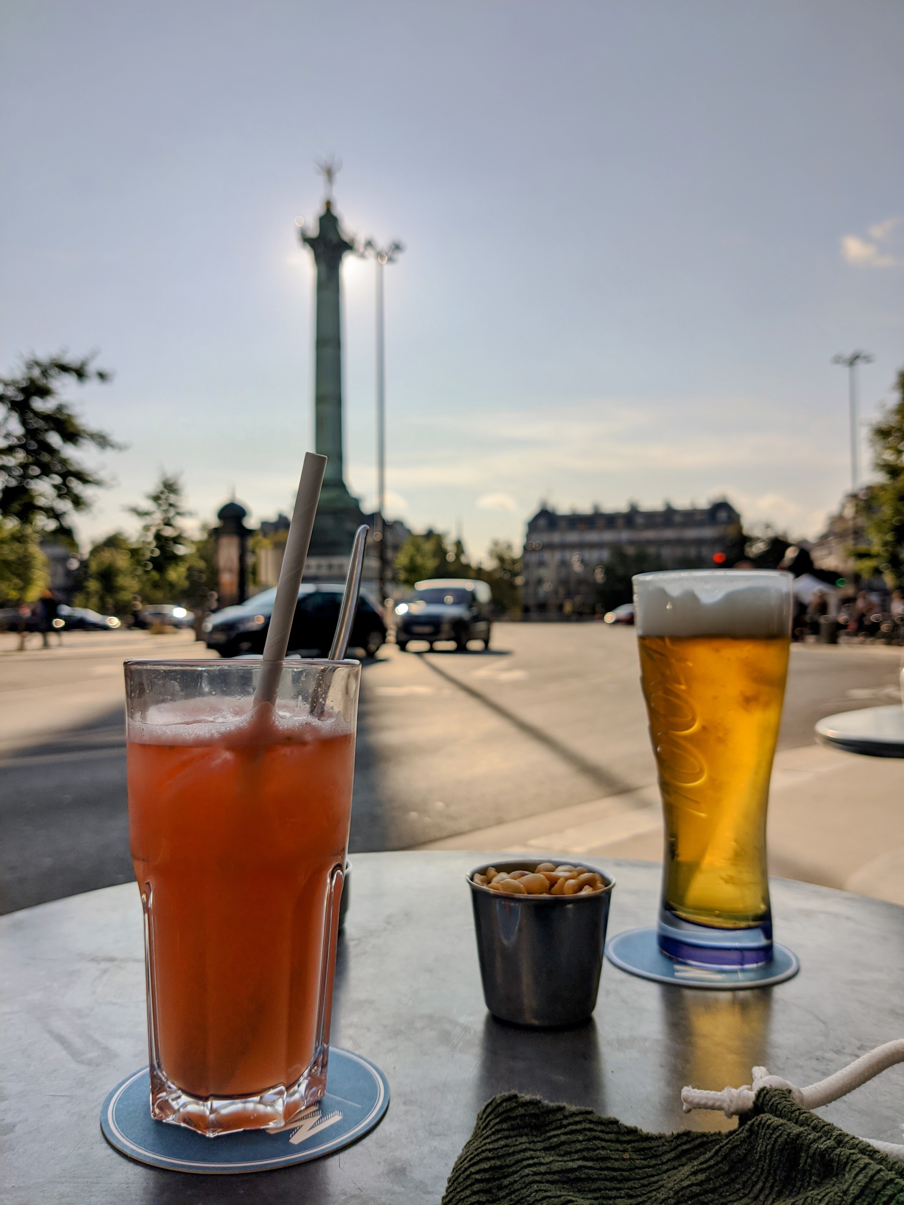 Un lieu à faire. Prennes le temps de vous asseoir en terrasse et contempler la place de la Bastille