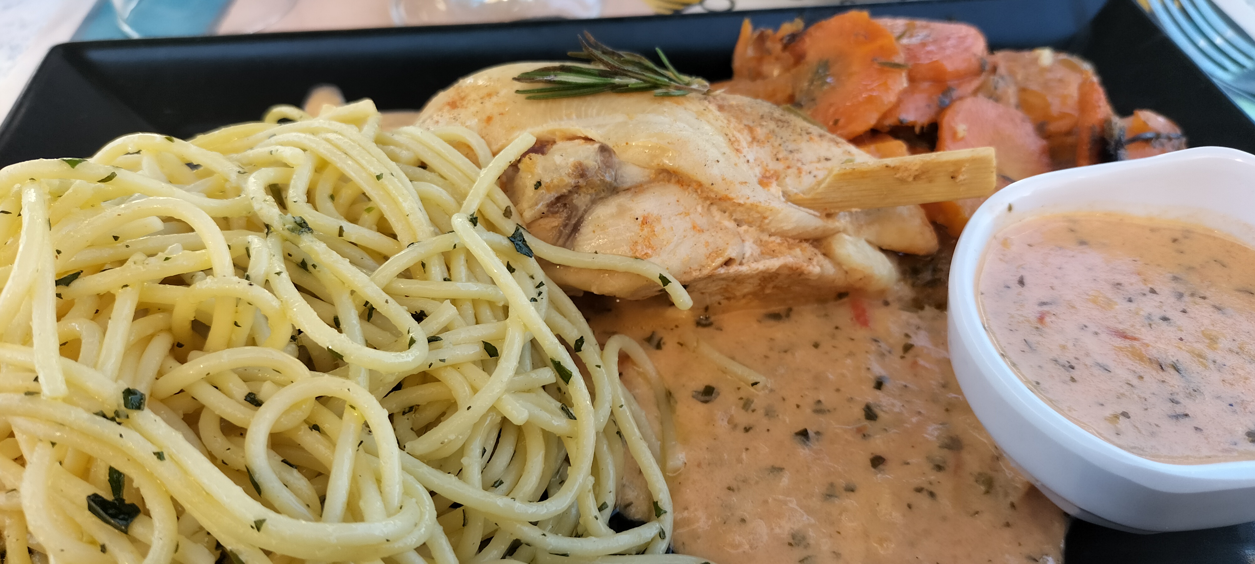 Alors 17.90 pour manger un poivron farci et 4 spaghetti c'est abusé. On ne vous annonce pas que si vous prenez un seul plat vous allez payer le même prix que le menu. C'est tellement dommage on avait ete accueilli avec le sourire mais là cest clairement du vol. Monsieur vous auriez franchement pu faire un geste et ne compter que le plat On a eu droit en prime à un gros mensonge de la serveuse.