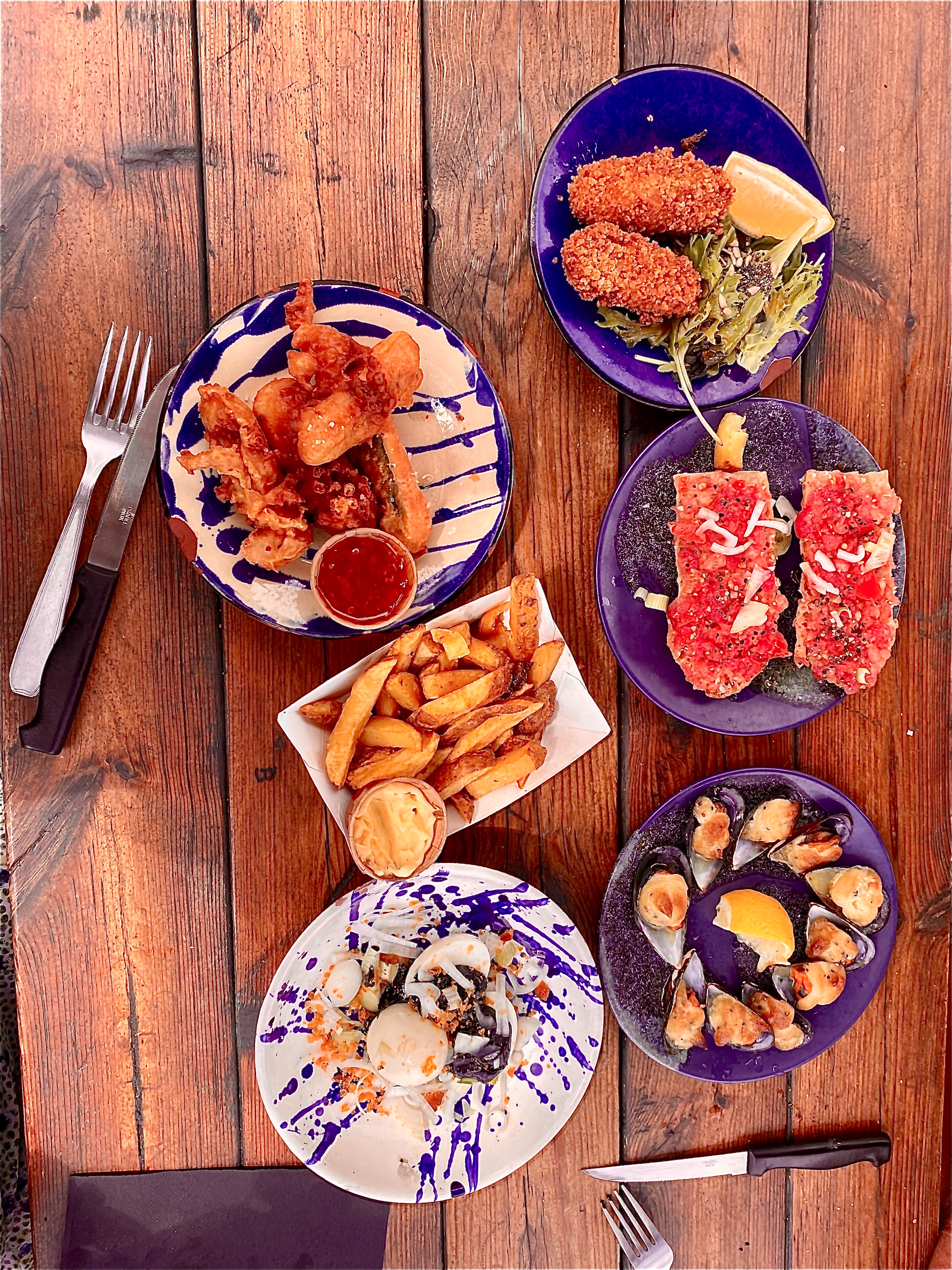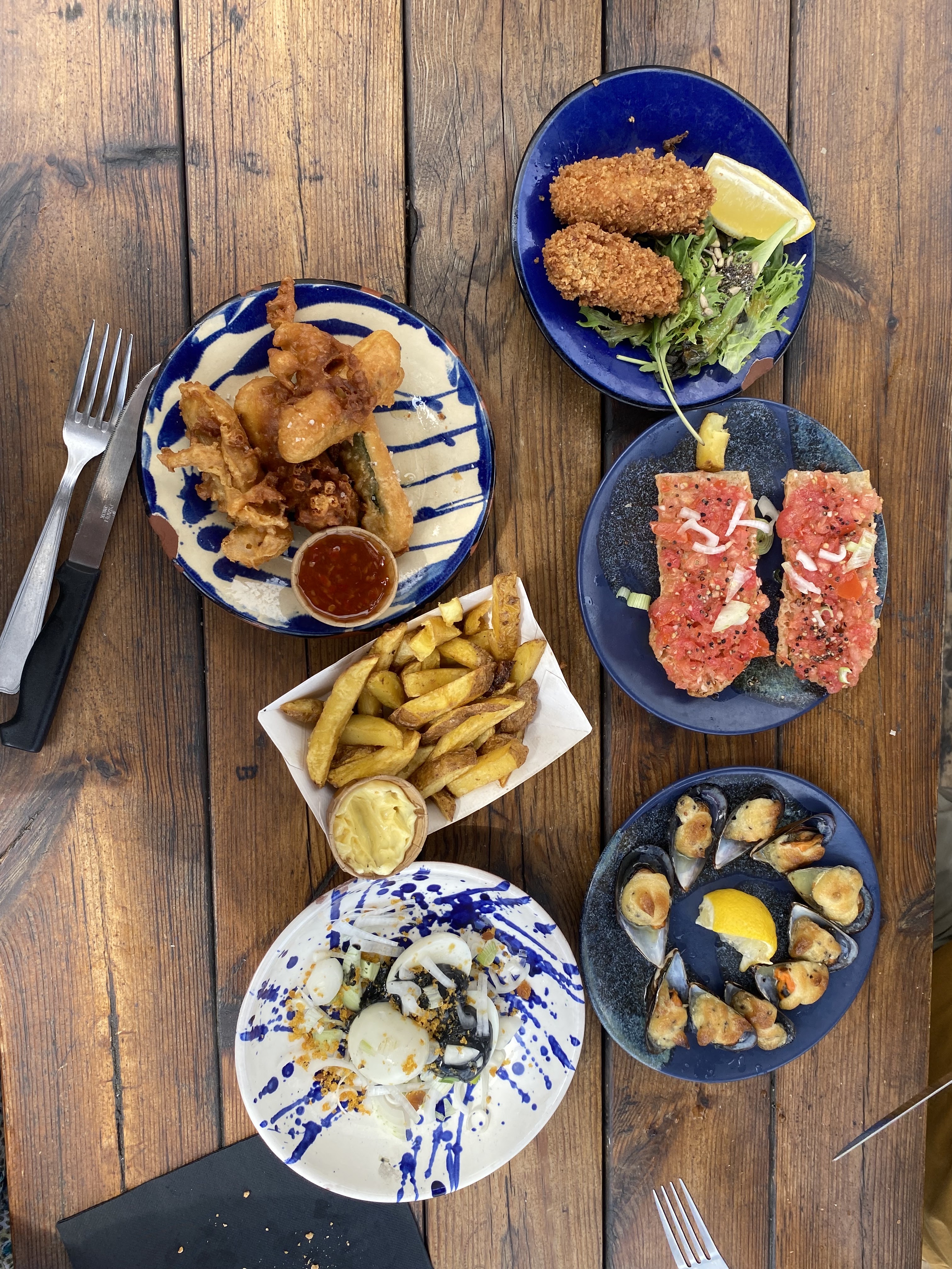 Un vrai restaurant : des tapas comme des plats (friture anchois ou crevette au top, tomates burrata à tomber) et des plats qui font que la réservation s'impose (tartare de poissons...).