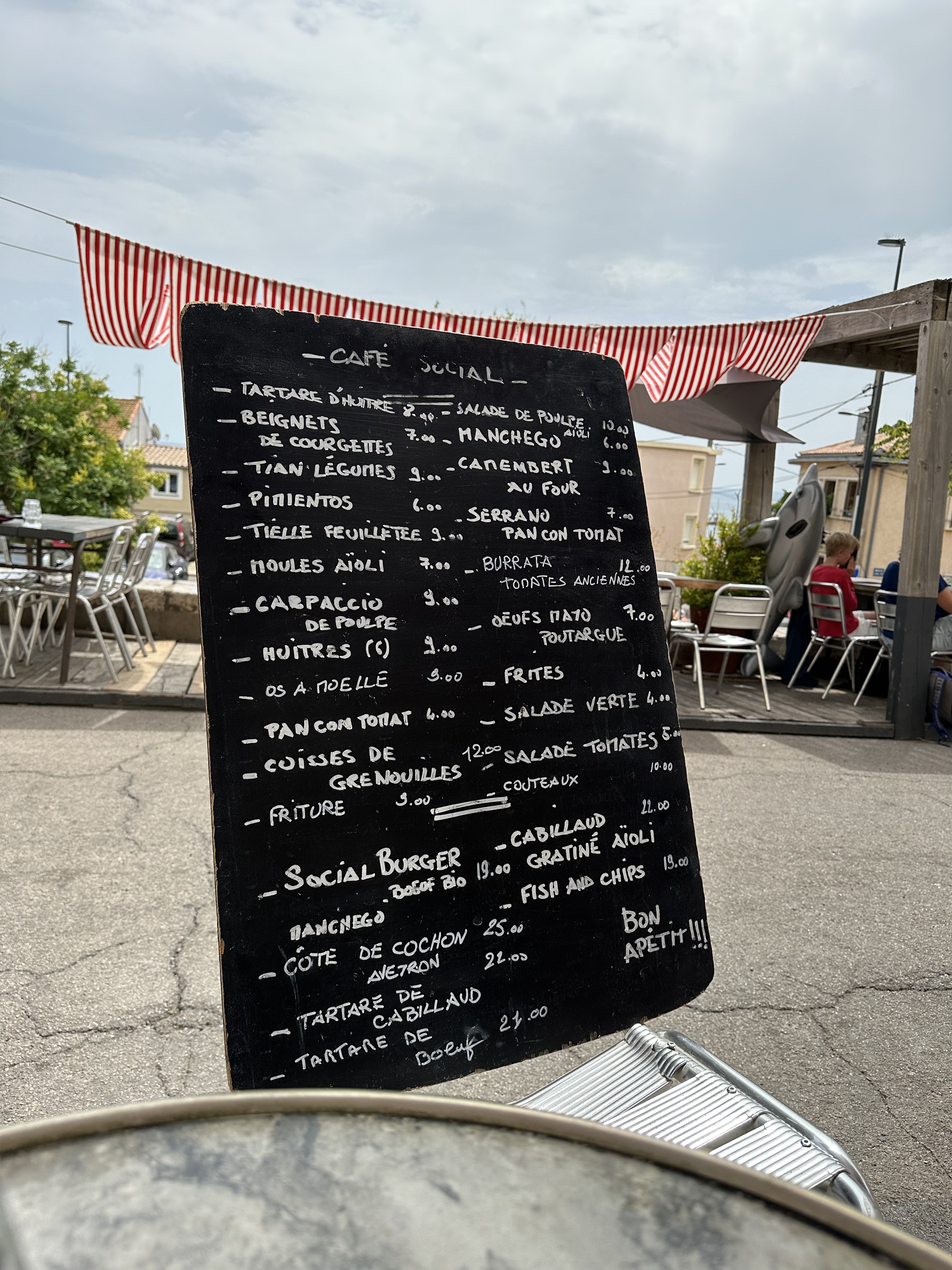 Incontournable de Sète, le social bar est une figure des sétois, nous avons pioché dans la carte du jour avec pas mal de délices. La chef connais bien la Méditerranée,tian de légumes, salade buratta tomates , pan con tomates, crème catalane tous réussis à merveille. Et hier le lampadaire, la pleine lune, est sortie de l'eau face à nos yeux sur la mer. Good