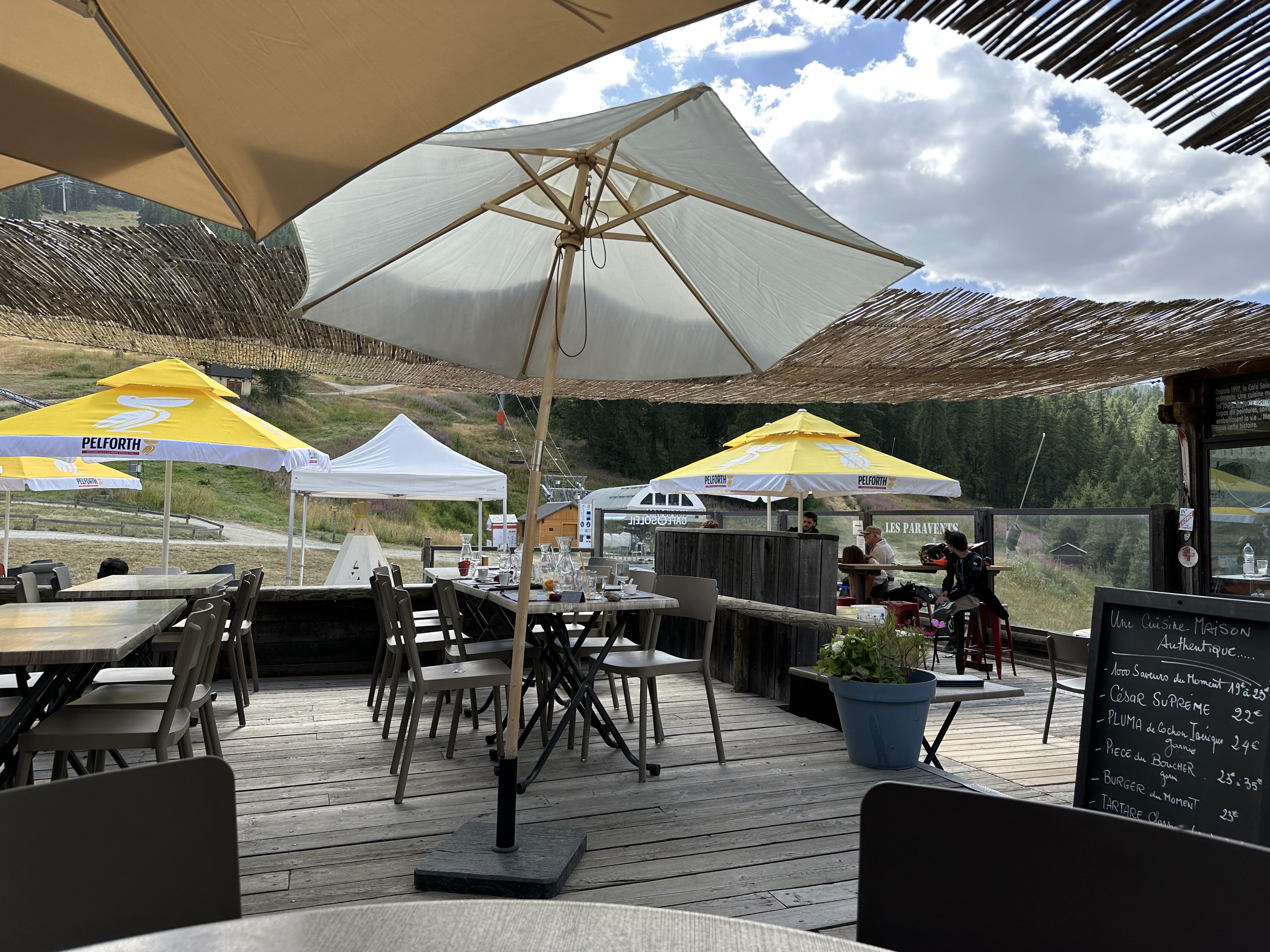 Terrasse ensoleillé et grand choix de repas. Idéal pour prendre le soleil l'après midi avant de reprendre les pistes.