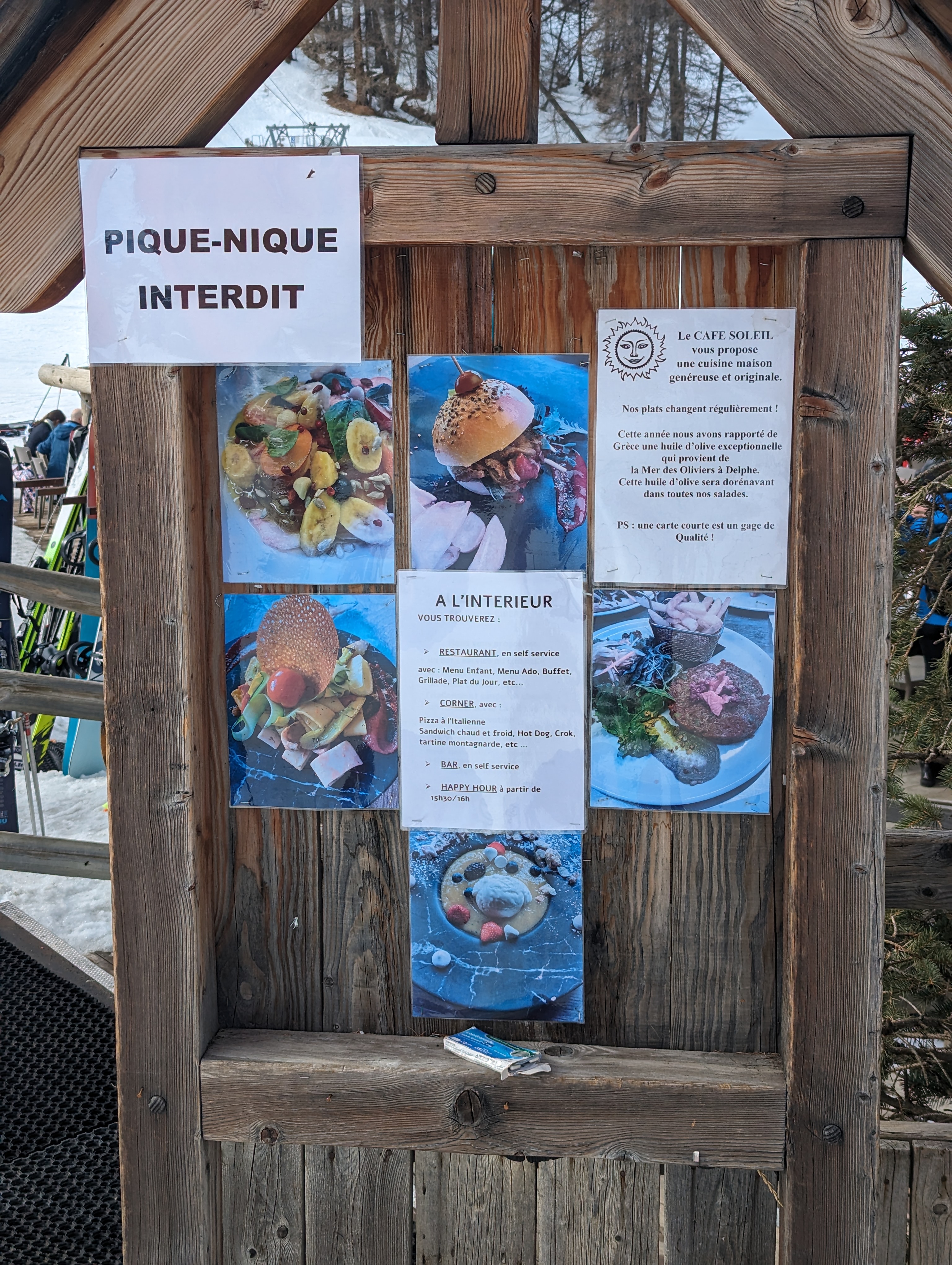 Jour d’ouverture de la station, plus de 45 minutes de queue pour un plat de spaghettis, pas de service à table = le Café Soleil égale à lui même Les plats sont froids et une assiette sur deux ne contient pas la bonne commande. Chaque année on espère une amélioration, elle ne vient jamais 🙃
