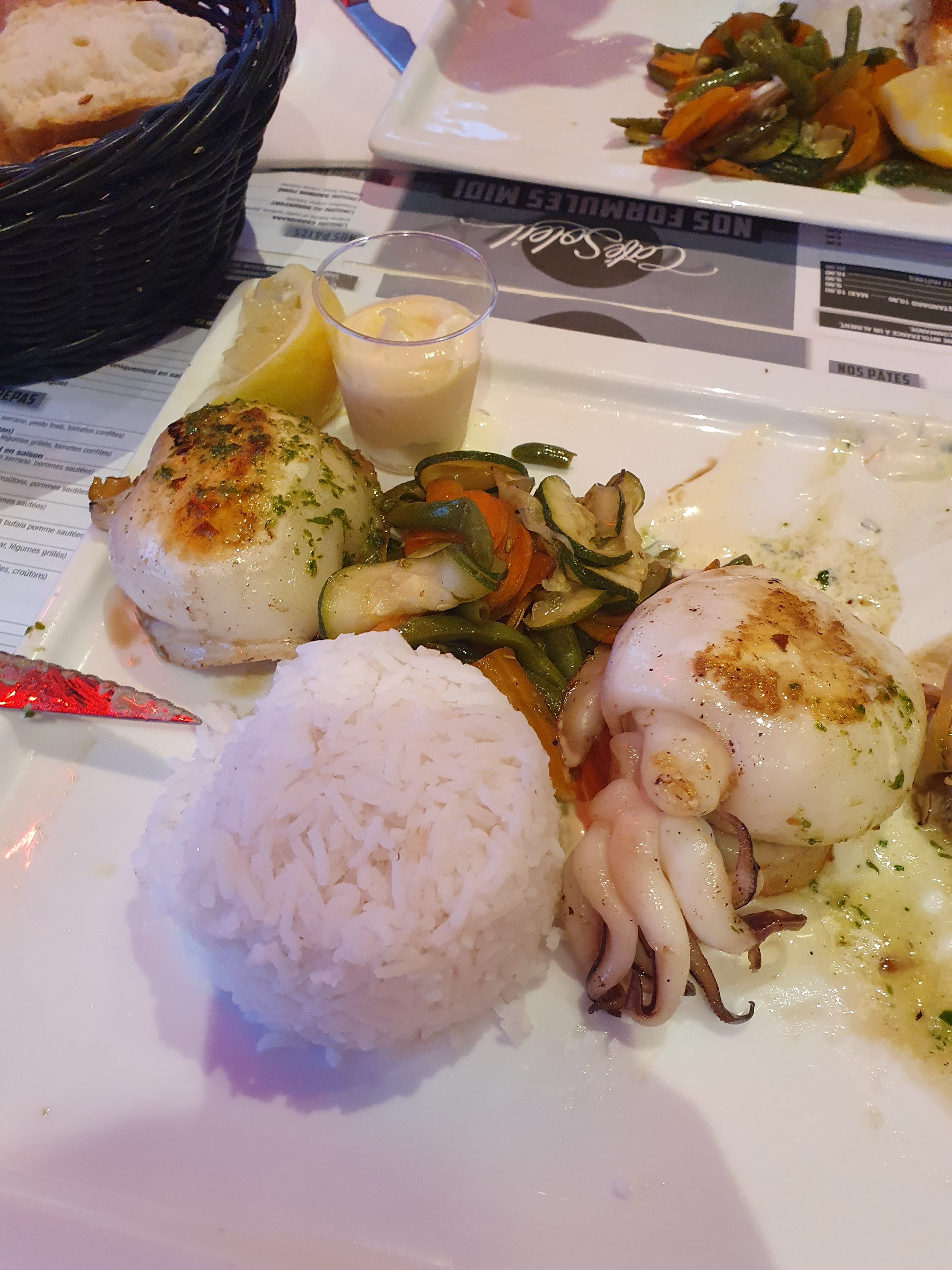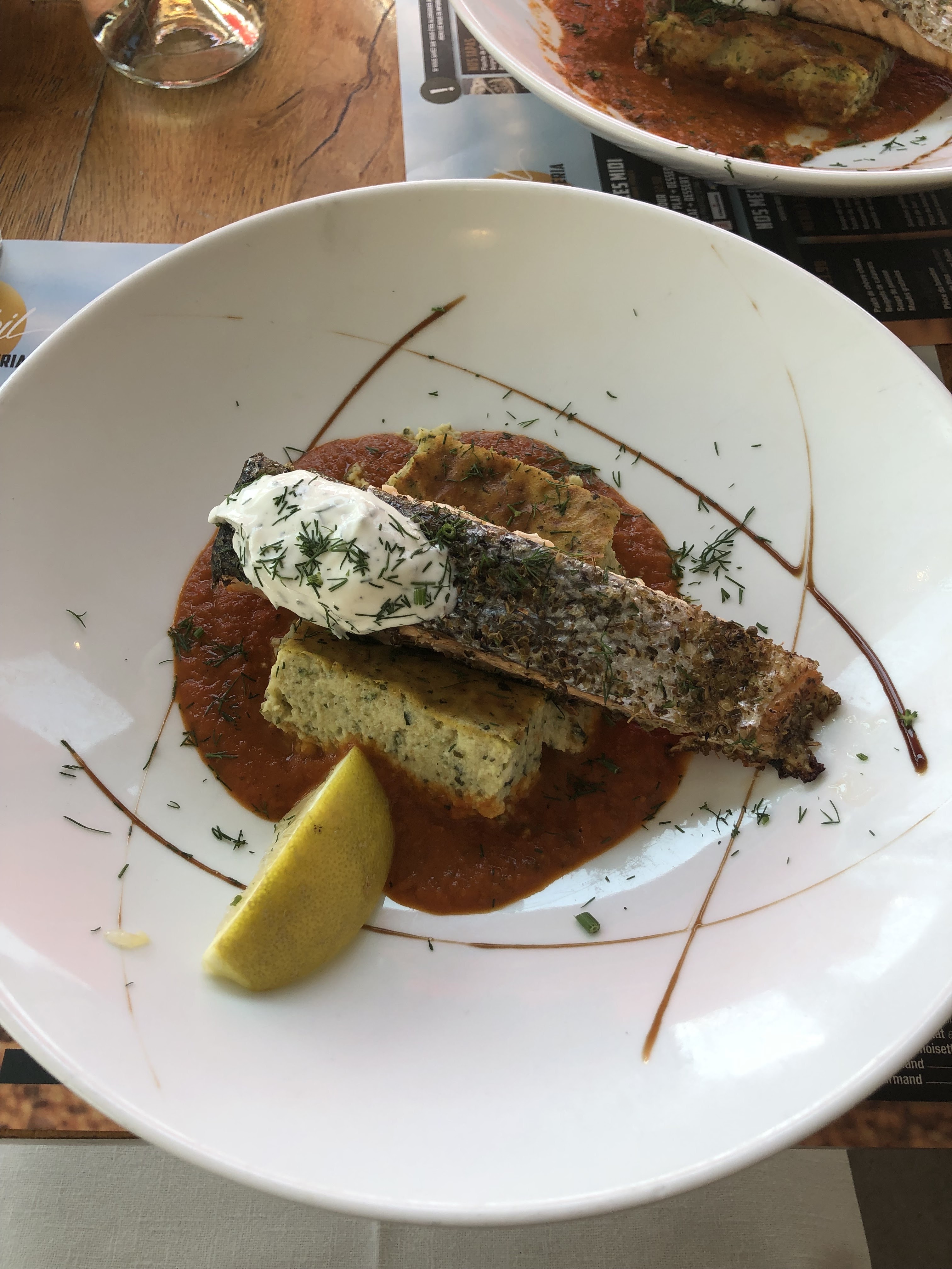Resto bien situé, personnel agréable et souriant, service plutôt rapide. Pavé de saumon plutôt bon, légumes franchement pas terribles mais ça passe. En revanche, très mauvaise note pour les seiches grillées en persillade… en fait la persillade est quasi inexistante, texture caoutchouteuse… dommage…