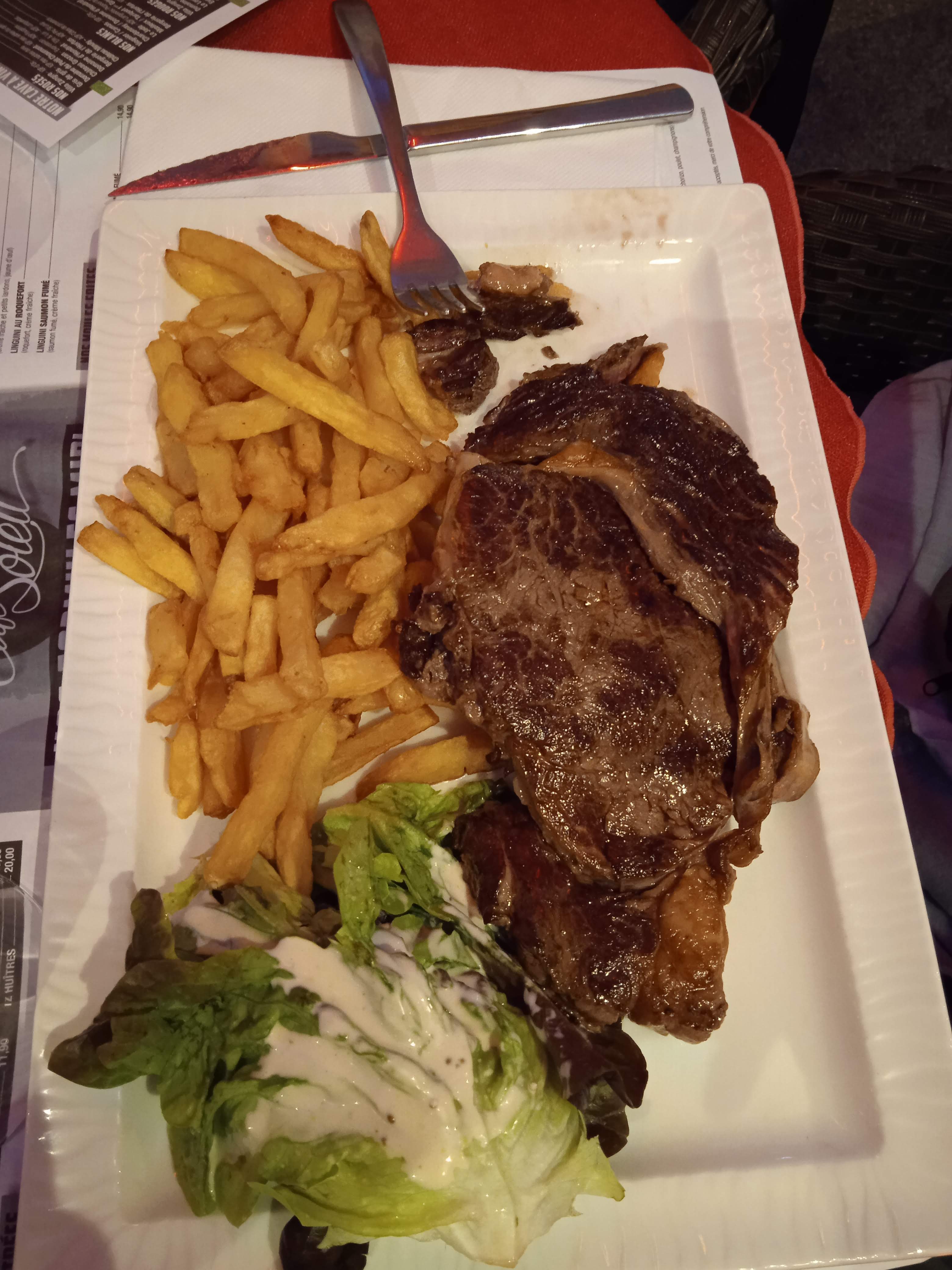 J'ai choisi un menu. L'entrée et le dessert étaient corrects. Par contre, je n'ai pas apprécié le plat principal, frites surgelées, salade verte inutile et la cuisson de la viande n'était pas ce que j'avais demandé. Le serveur a été très réactif surtout lorsque je lui ai demandé pourquoi le repas de mon petit fils de 5 ans n'était pas servi en même temps que nous. Apparemment, le cuisinier a omis de le préparer ! Résultat il y a eu beaucoup d'attente, le repas a duré presque 2 heures !