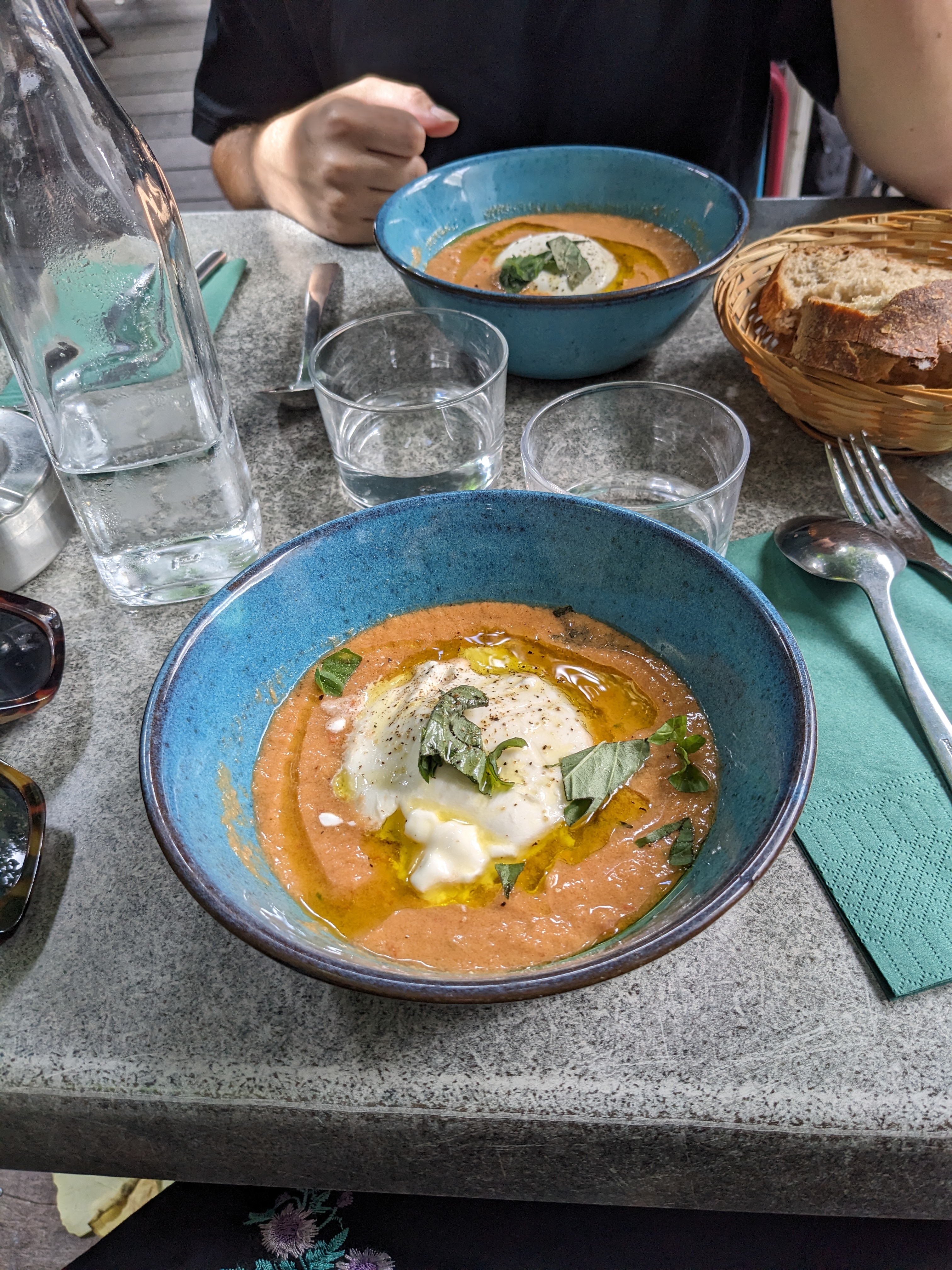 Café au soleil du matin, accueil très chaleureux ! Hâte d'y aller déjeuner..