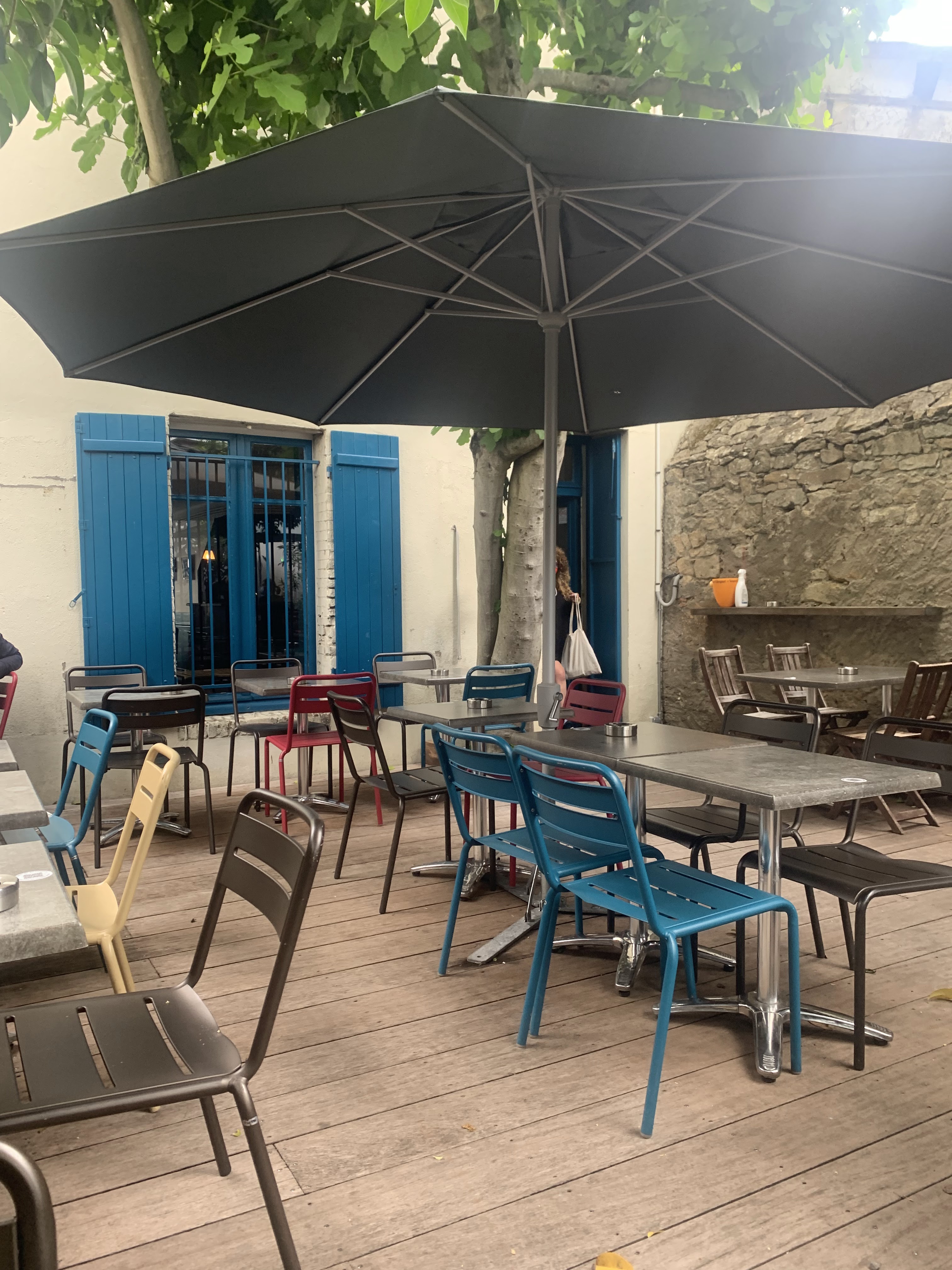 Petite cours sympa et prêt de chapeau non superflu bien qu'il y ai des parasols. Carte d'été bien adaptée aux chaleurs. A recommander