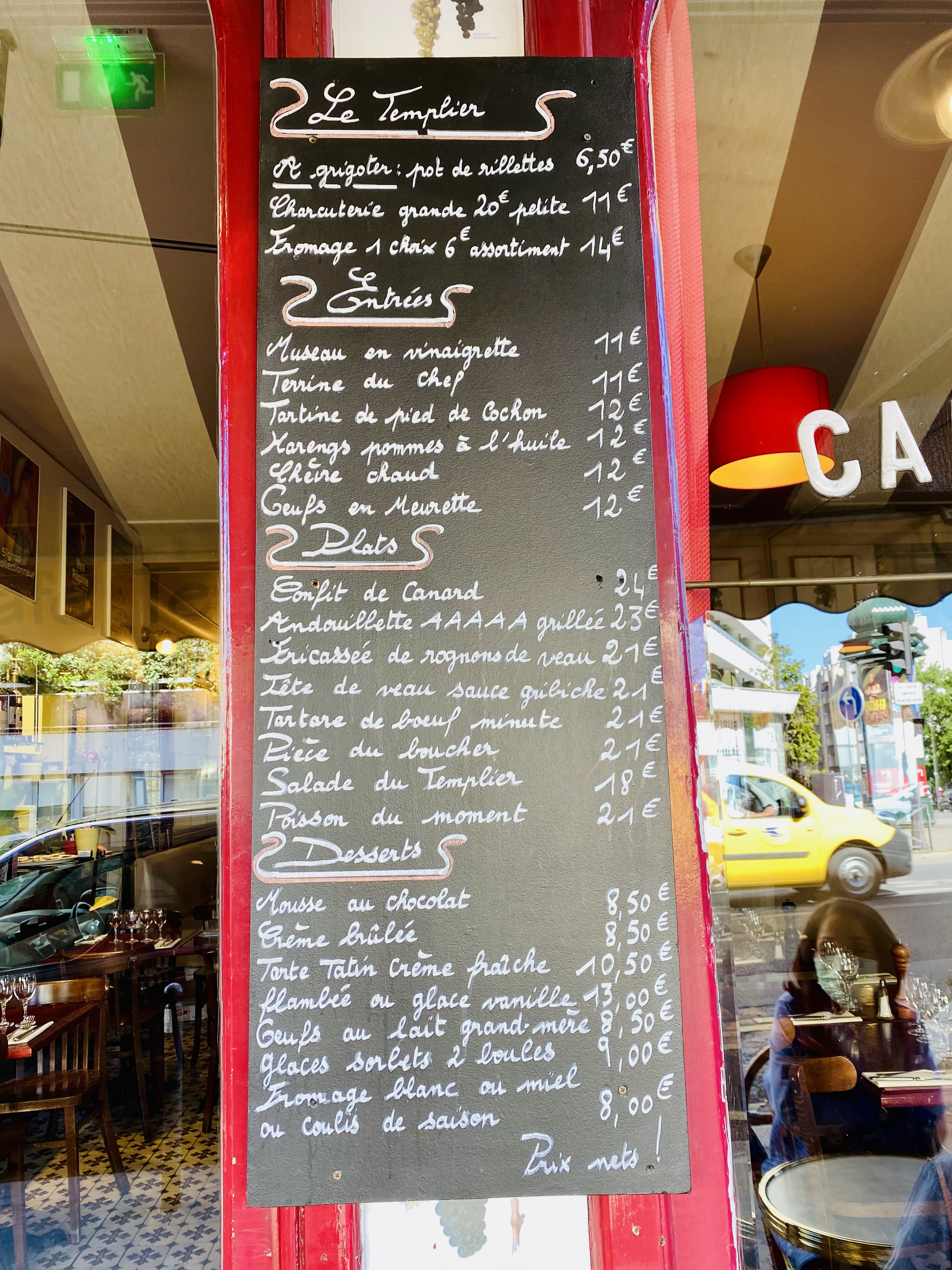 Cuisine de tradition française... GÉ-NI-AL !!! On est pas bien en France avec nos bons petits plats bien de chez nous ! 😍🇫🇷👍 Le Café Templier est une adresse qu'on ne peut que recommander aux amoureux de la cuisine de terroir. Nb : les pieds de cochon sont une tuerie !