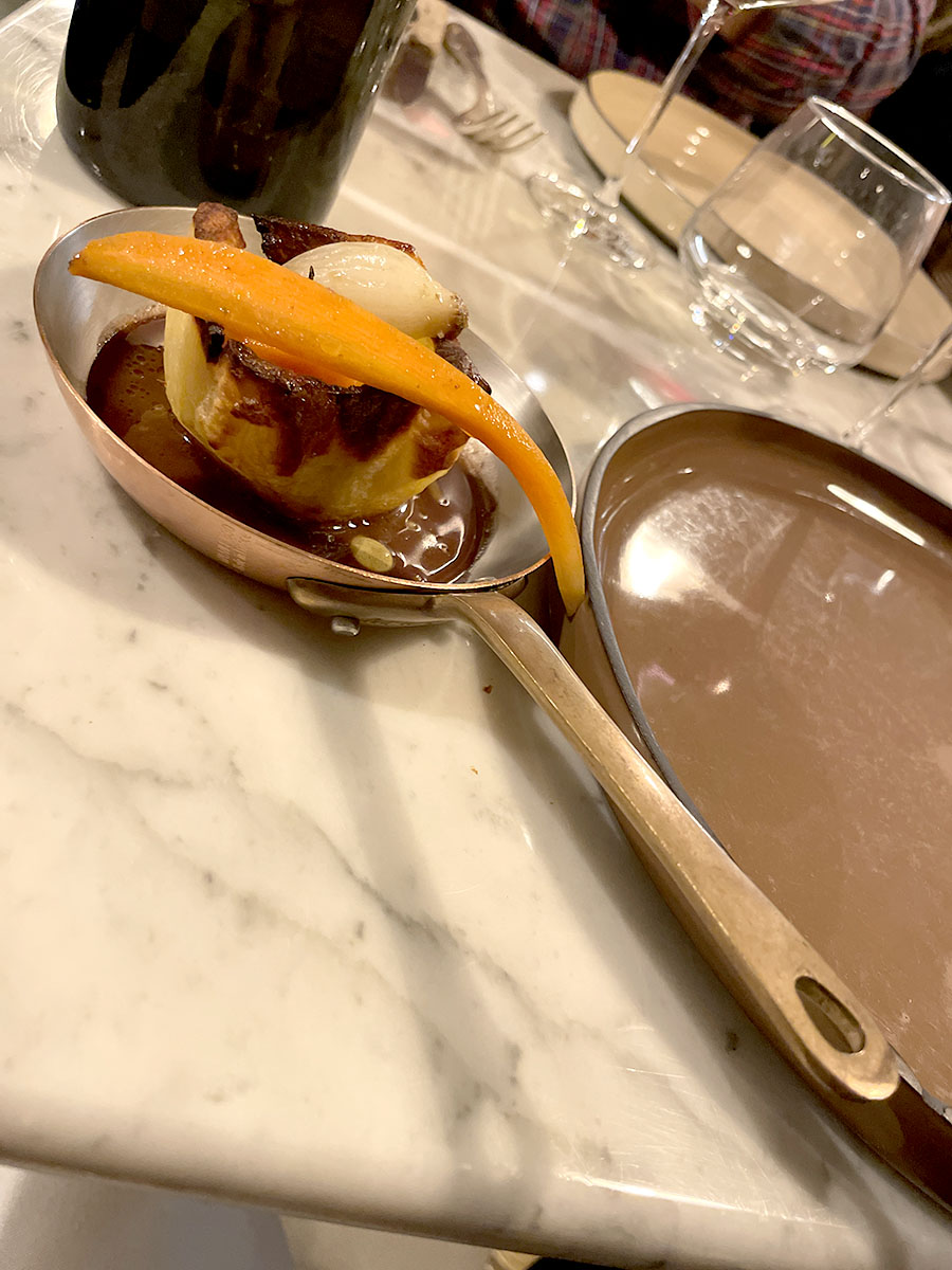 Une cave très fournie, une carte avec des mets et produits de qualité (une excellente idée de partager des plats comme à la maison) et un service avec tous les codes des bonnes tables (de l'accueil à la découpe) sans en faire trop. Bref une très belle adresse pour un excellent moment.