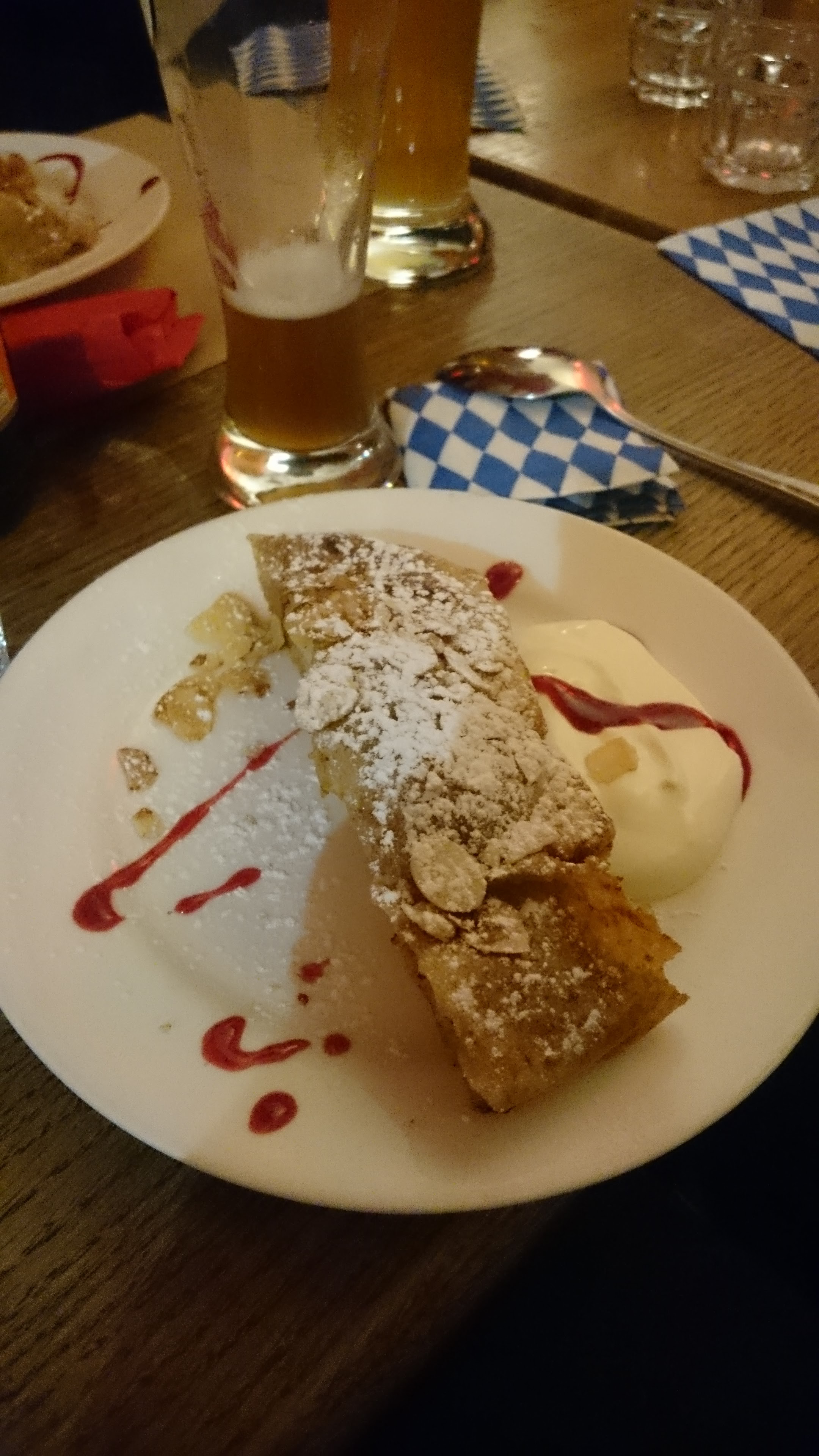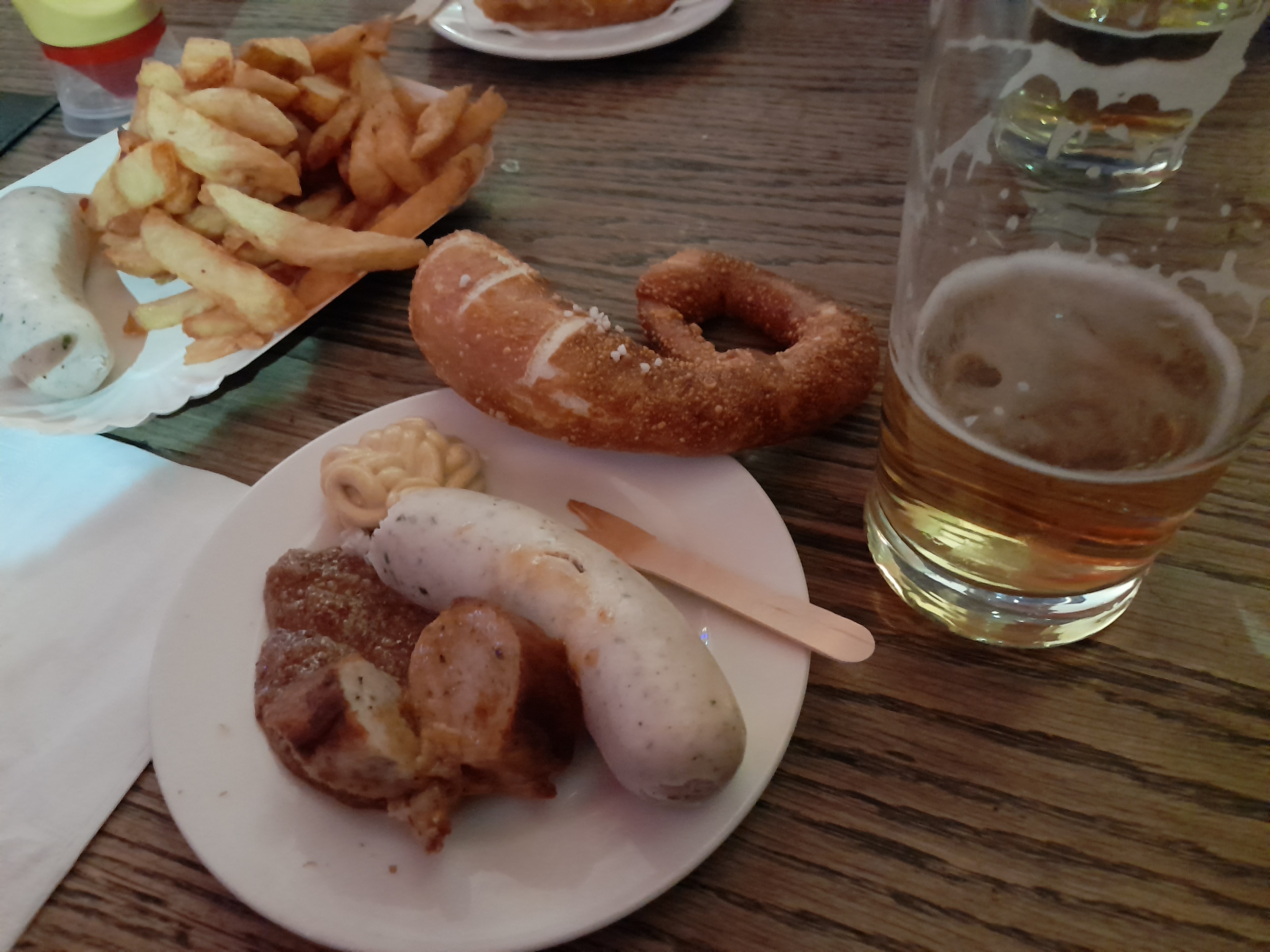 Entrez avec les bonnes attentes et c'est un endroit très solide : - beaucoup de bière allemande ; pour bien s'amuser - de grandes portions de saucisses allemandes authentiques. Ils ont vraiment bon goût - quelques jolis desserts ; étonnamment - très abordable : déjeuner ou dîner. Ne vous attendez pas à du gourmet mais à une bière et des saucisses et vous êtes bien ici.