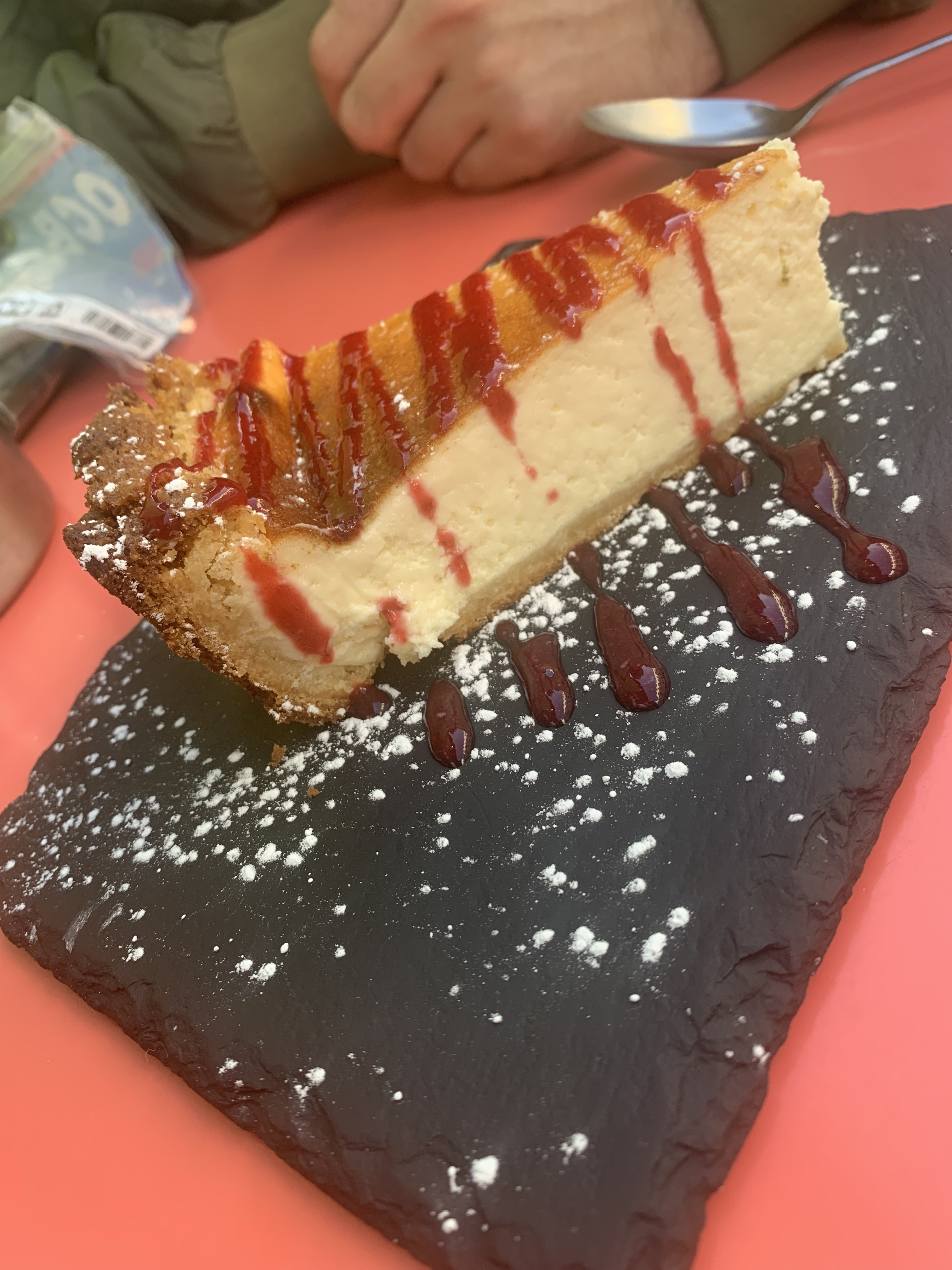 Chanceuse quand nous voulions un dessert et encore chanceuse pour le déjeuner. Mon mari et moi avons tous deux commandé des escalopes de poulet, l'une avec une généreuse portion de légumes sautés, l'autre avec des frites. Mon mari a également commandé une salade de pommes de terre allemande et une bière blanche Maisel. Le tout délicieux et bien assorti. Desserts - place au strudel aux pommes et au fondant au chocolat avec son centre de chocolat fondant. Thés Ronnenfeldt. Bondé et animé au déjeuner et les serveurs gardent le tout organisé avec grâce. Une pièce simple qui remplit pleinement sa fonction. Une préoccupation. Pas de savon dans l'espace salle de bain/toilettes lors de 2 visites distinctes.