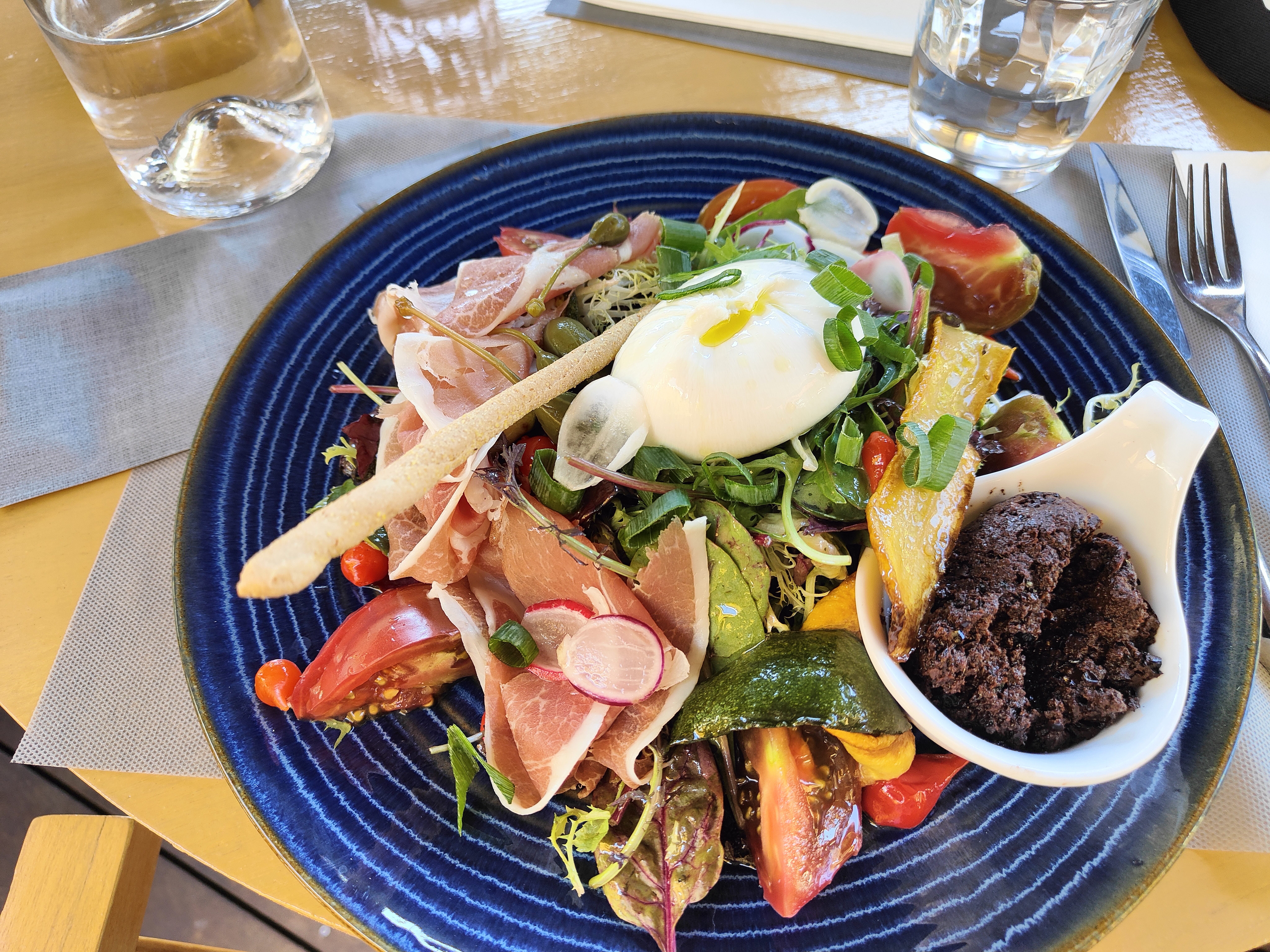 Restaurant bien situé, très joli et agréable, accueil inexistant, restaurant quasi vide mais on doit demander pour avoir du pain et de l'eau, j'ai beaucoup apprécié ma salade mais la salade césar de mon fils était très décevante.
