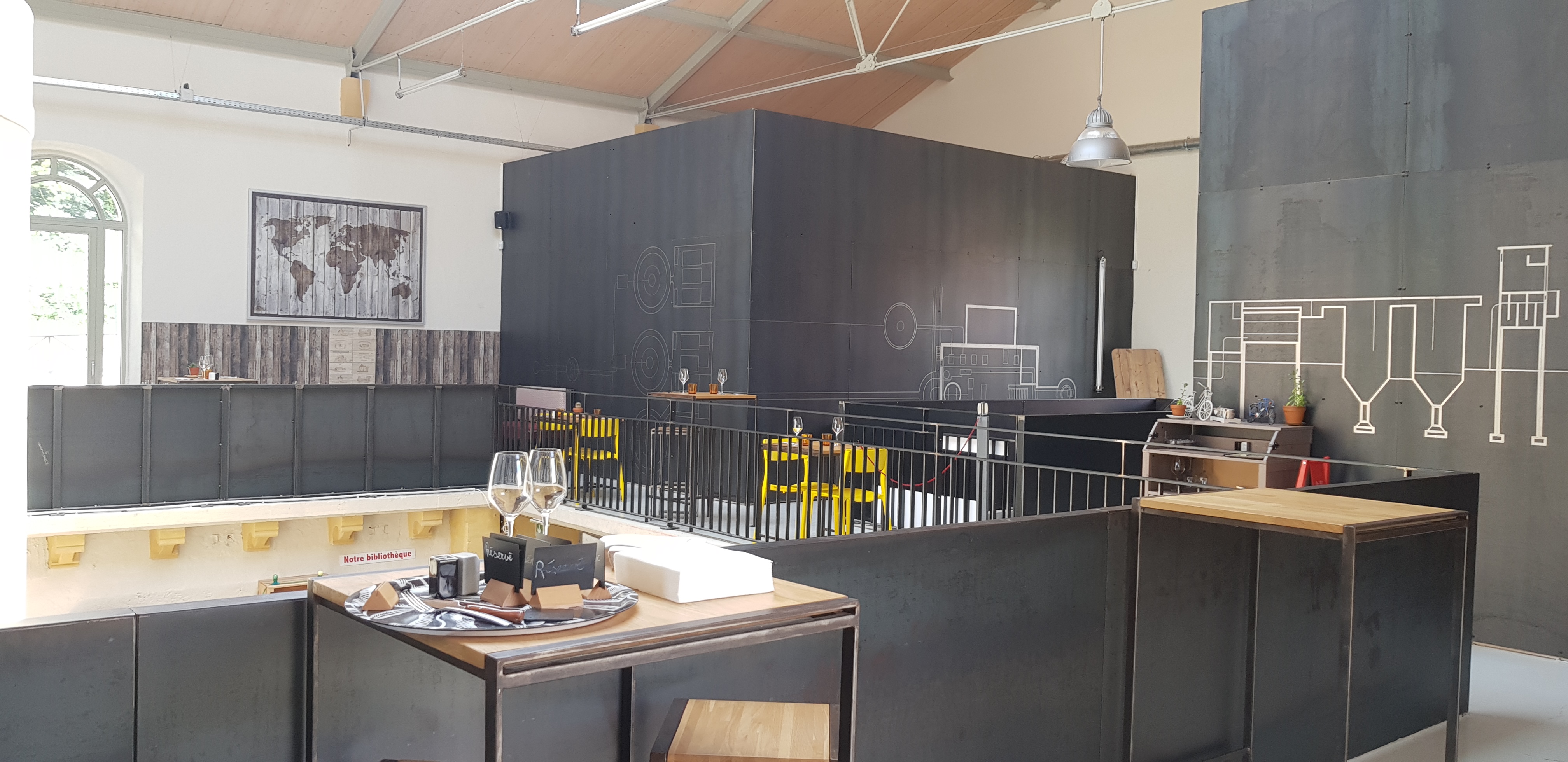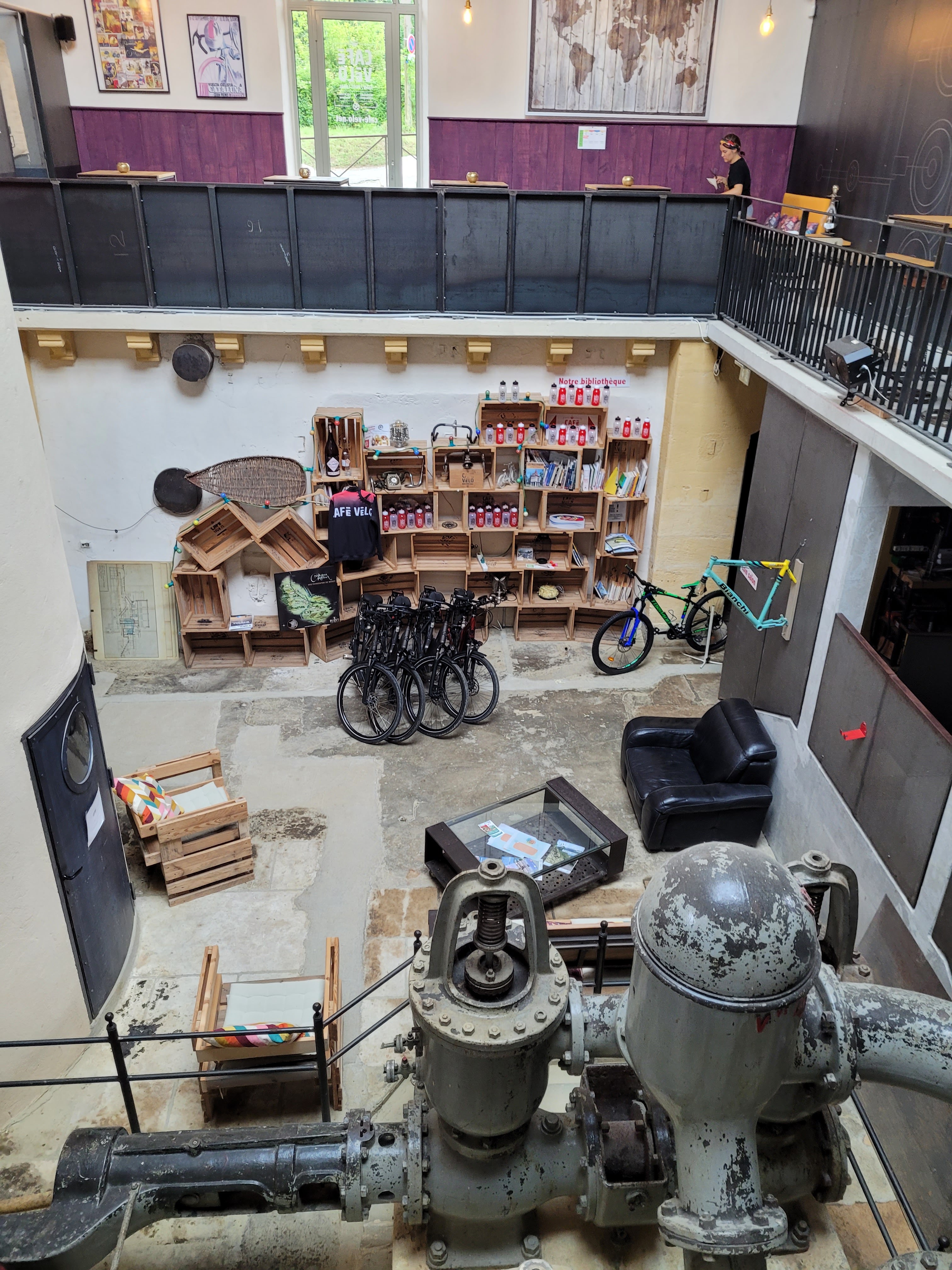 Lieu très sympa établi dans une ancienne usine de pompage. Je mets un 3 non pas pour le café lui même qui mériterait un 4 Mais pour la location de vélo. Nous avons louer deux fois, la première, un collier de serrage du tube de selle d'un des deux vélos à lâché donc mon fils à fait une quinzaine de kilomètres avec une selle complément baissée, le seconde nous est heureusement arrivée lors de l'essai des vélos lorsque le dérailleur est partit dans les rayons et donc était inutilisable. La personne présente n'est pas à blâmer, il manque simplement au minimum une personne supplémentaire dédiée à l'atelier seulement et la préparation des vélos. Une seule personne ne peut pas s'occuper sérieusement des vélos et du comptoir.