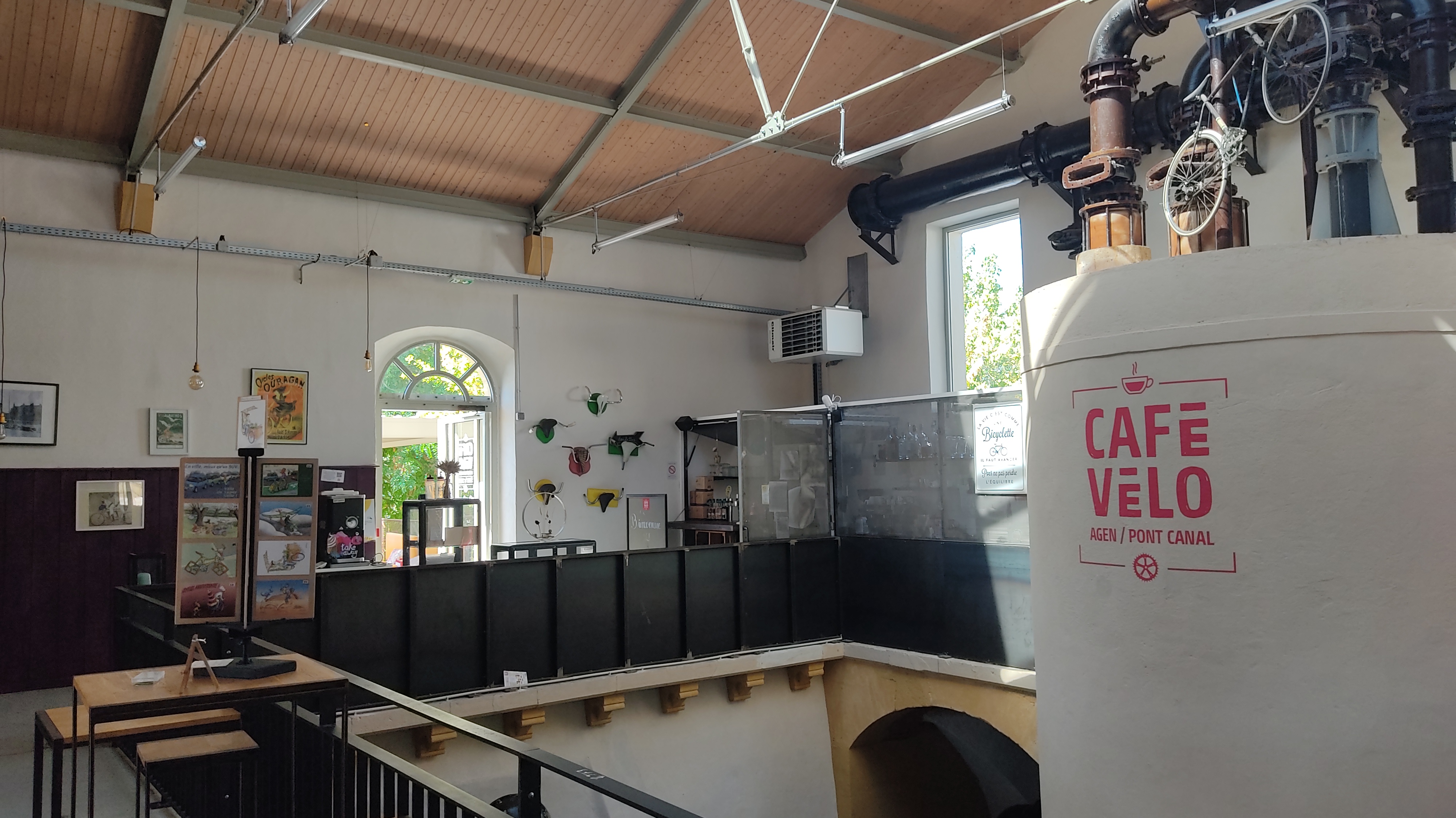 Lieu convivial à la déco inspiré du Vélo, avec atelier de réparation. Il se trouve juste en dessous du Pont Canal... pause détente avec ou sans vélo...