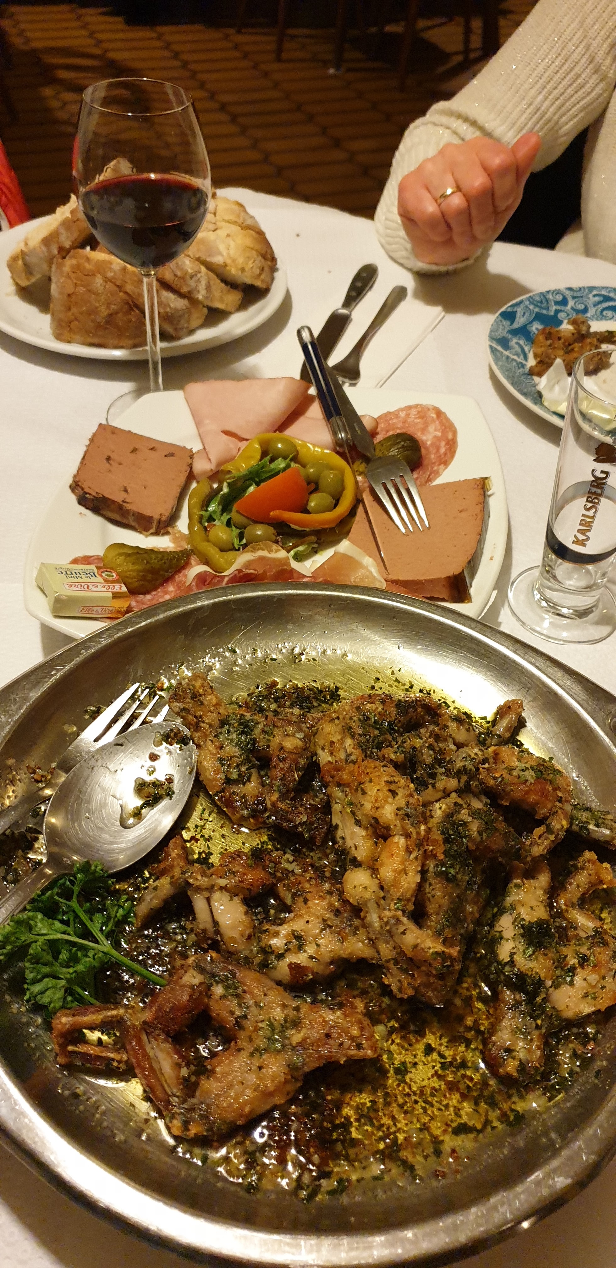 La nourriture était bonne. J'attendais avec impatience la sauce pour les côtes levées avec les cuisses de grenouilles, mais malheureusement ce n'était que de l'ail avec un peu de beurre. Comme il n'y a pas de cartes parmi lesquelles choisir (mais c'est juste ce qui est pittoresque), je ne savais pas exactement ce que je commandais ni combien cela coûterait. L'entrée était sensationnelle. Le pain est également excellent ! Une bonne soirée.