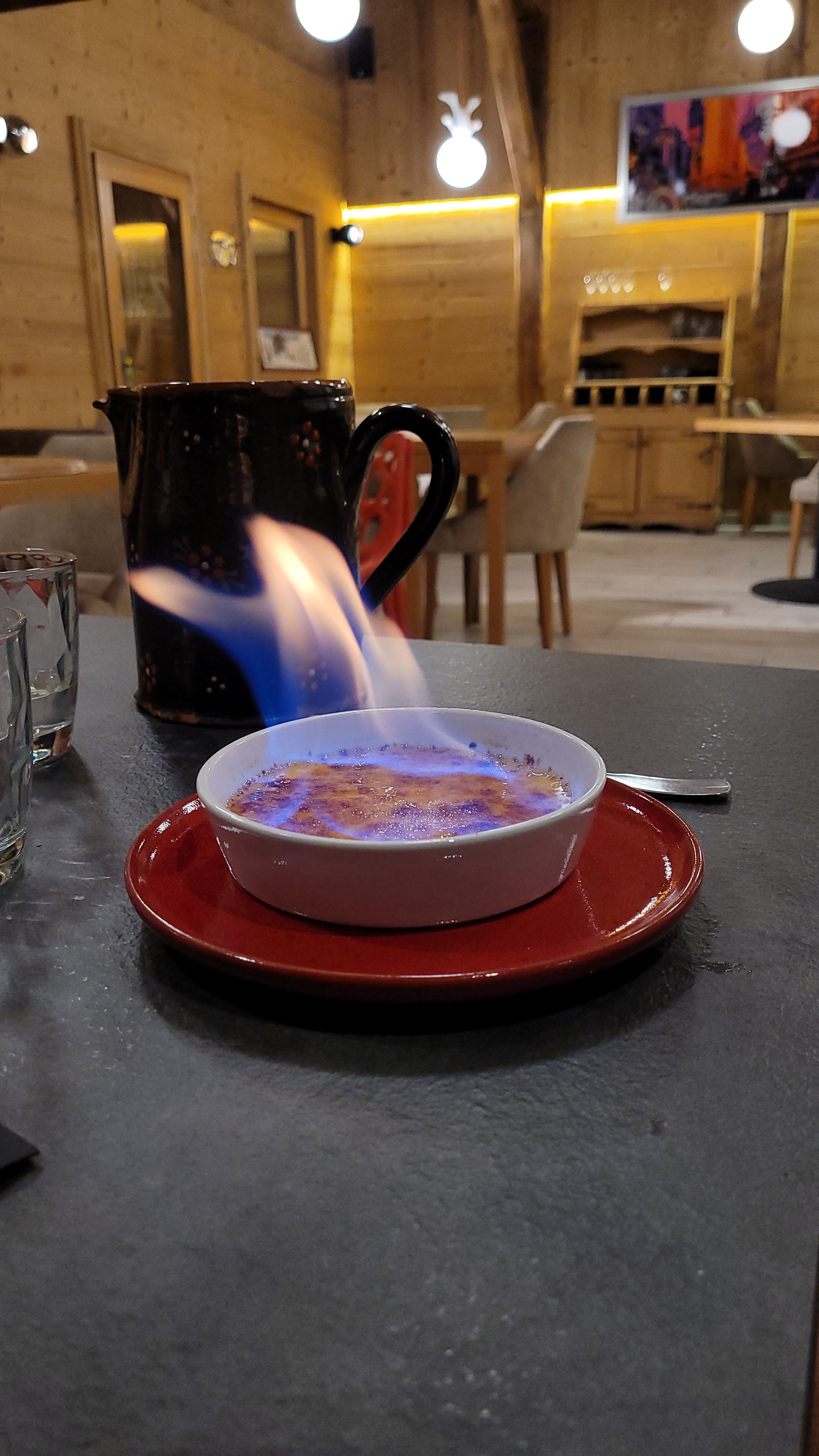 Deux dîners dans ce restaurant lors de notre séjour : excellents. Chalet magnifique à l’intérieur comme à l’extérieur. Repas délicieux : fondue, bertoud, tartiflette, desserts. Service agréable.